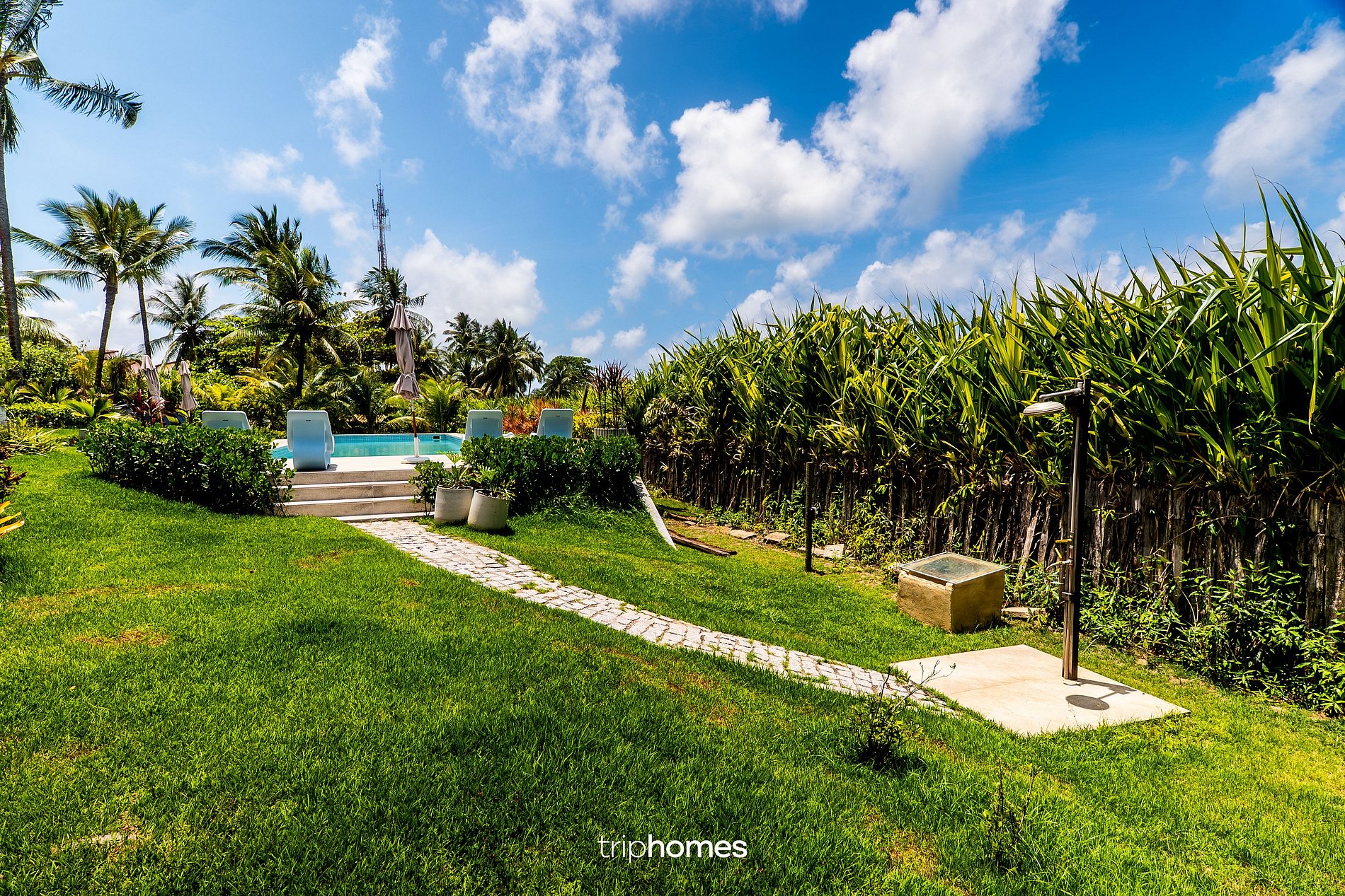 Luxury home surrounded by tropical gardens, with seven air-conditioned bedrooms, including a master suite with a balcony, private sauna, and a spacious outdoor area immersed in nature. Spacious rooms, elegant décor, and a perfect setting for families and groups seeking comfort, privacy, and sophistication in one of the most sought-after destinations on the Bahian coast.