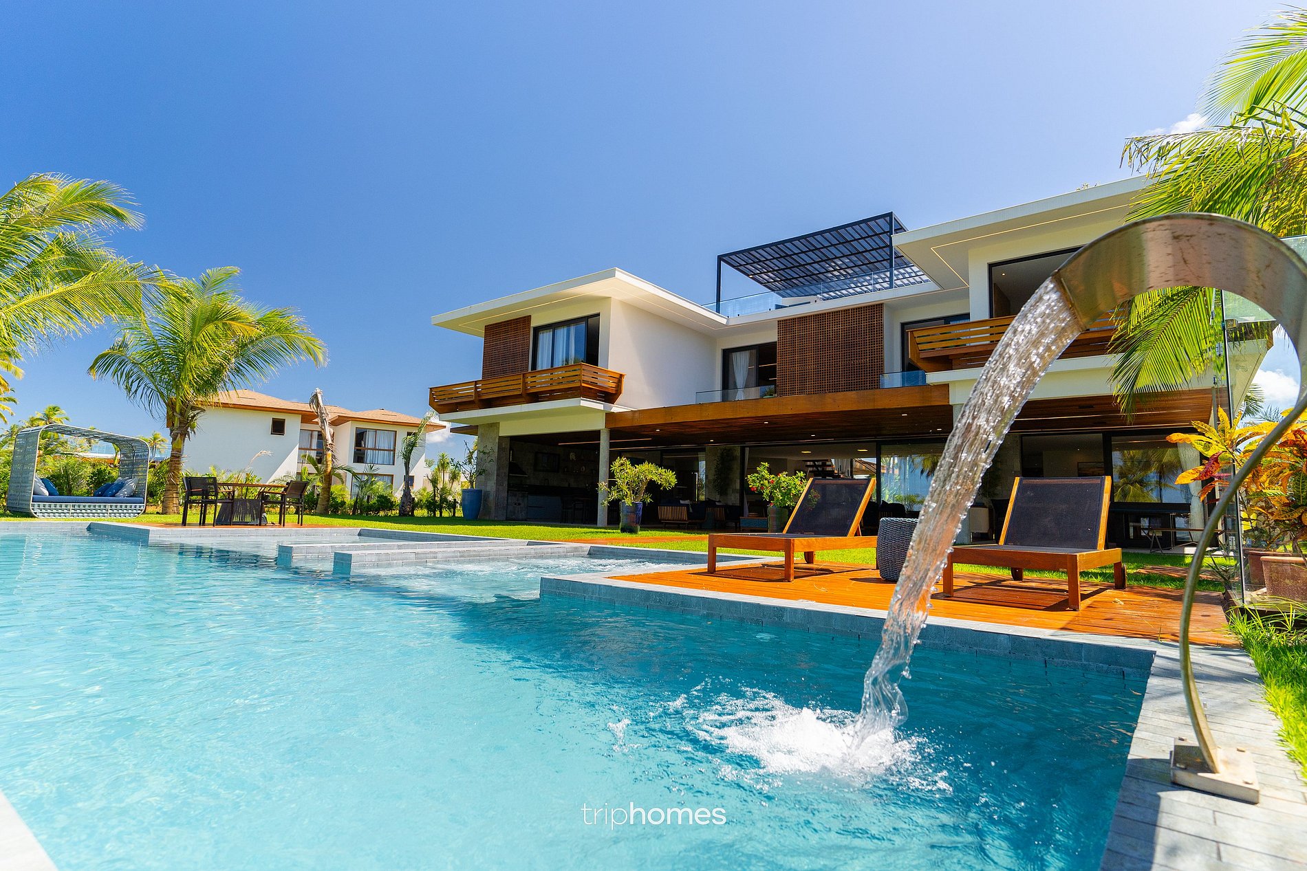 Welcome to the Iberostar Premium Beachfront Mansion, a modern, newly-built beachfront home in stunning Praia do Forte, Bahia. This luxurious residence offers the ultimate in comfort and elegance, with stunning, panoramic views of the sea, coconut groves and the golf course from the IBEROSTAR Praia do Forte condominium.
