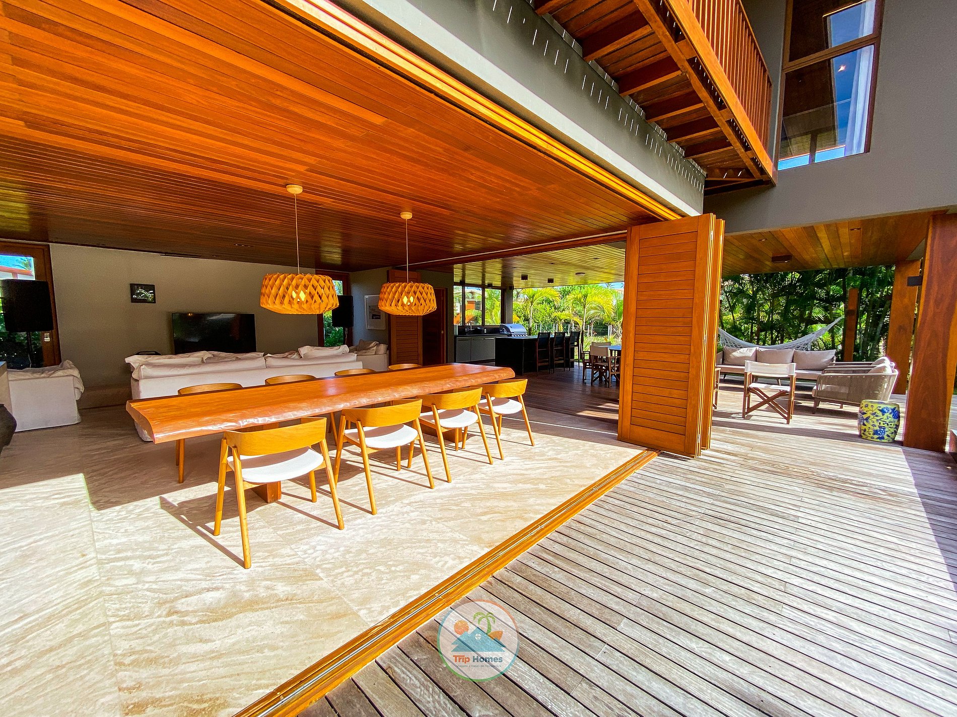 The external leisure area has a magnificent space, elegant and rustic in hardwood, a swimming pool with sensational hydro pool with an infinity edge, and a floating tray for an afternoon snack at sunset. There is a wooden deck all around, with comfortable lounge chairs and a space also integrated to the gourmet area.