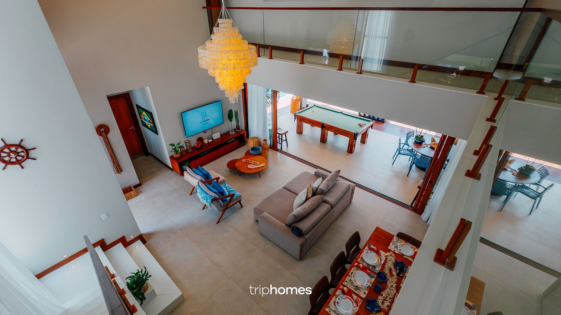 Located in one of the most exclusive destinations on the Bahian coast, the Pé na Areia Luxury Mansion in Guarajuba offers comfort, sophistication and a complete structure for unforgettable stays. With a privileged view of the ocean, it is ideal for groups and families looking for exclusivity and refinement. The property has a large social area with a living room equipped with a 60” TV, surround sound, sofas and armchairs, as well as a dining room for eight people. For leisure time, the indoor gourmet area has a pool table, barbecue, beer garden, ice machine and 45” TV, while the outdoor area offers nautical rope furniture, sun loungers and a drinks area. The pool has a waterfall, hydro, LED lighting and surround sound, as well as umbrellas, hammocks and a playhouse for children.