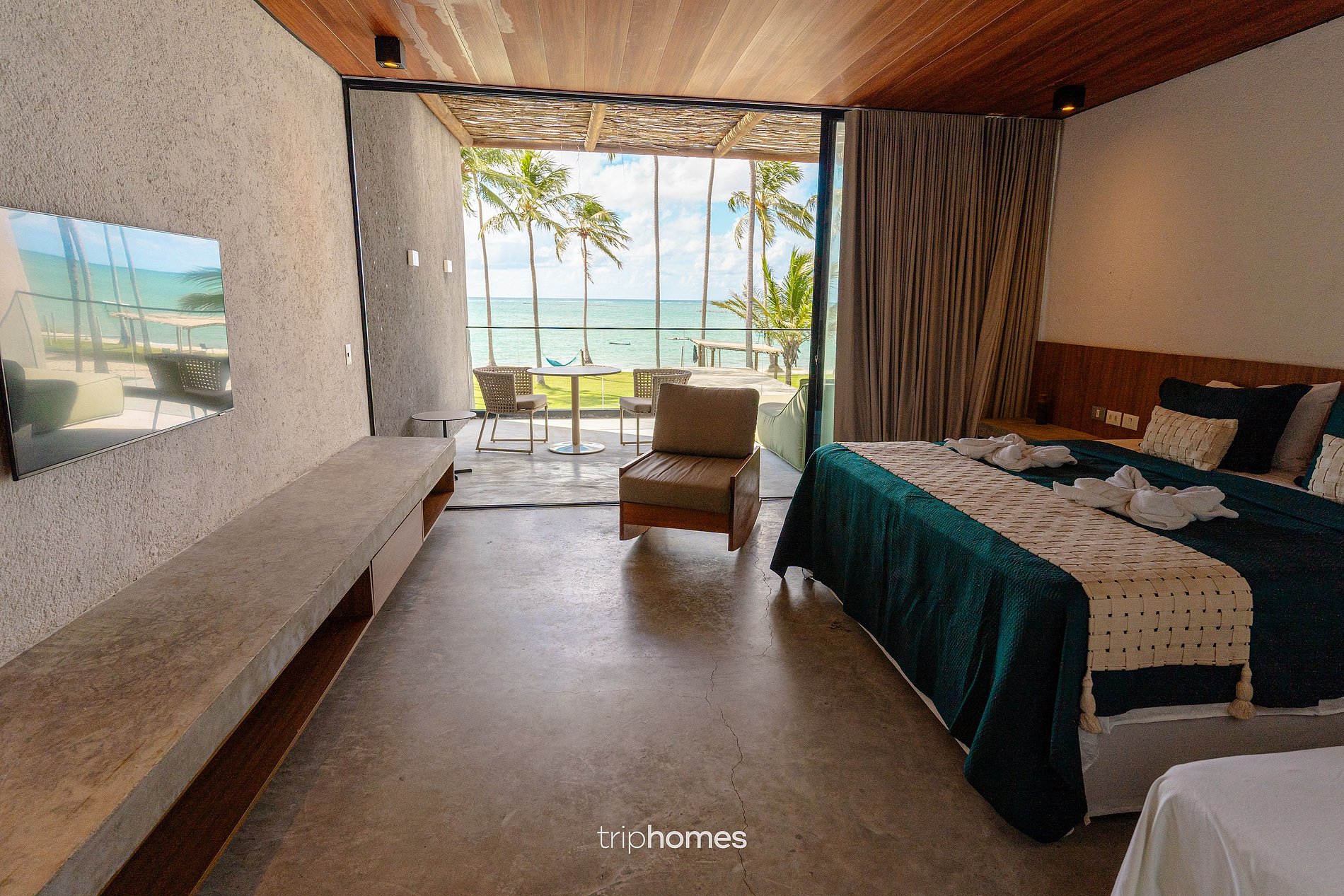 With 5 suites elegantly designed in a rustic chic style and architecture signed by Rodrigo Fagá, the Villa Prime Beira-Mar offers spaciously elegant accommodations for up to 14 people, ensuring privacy and comfort.