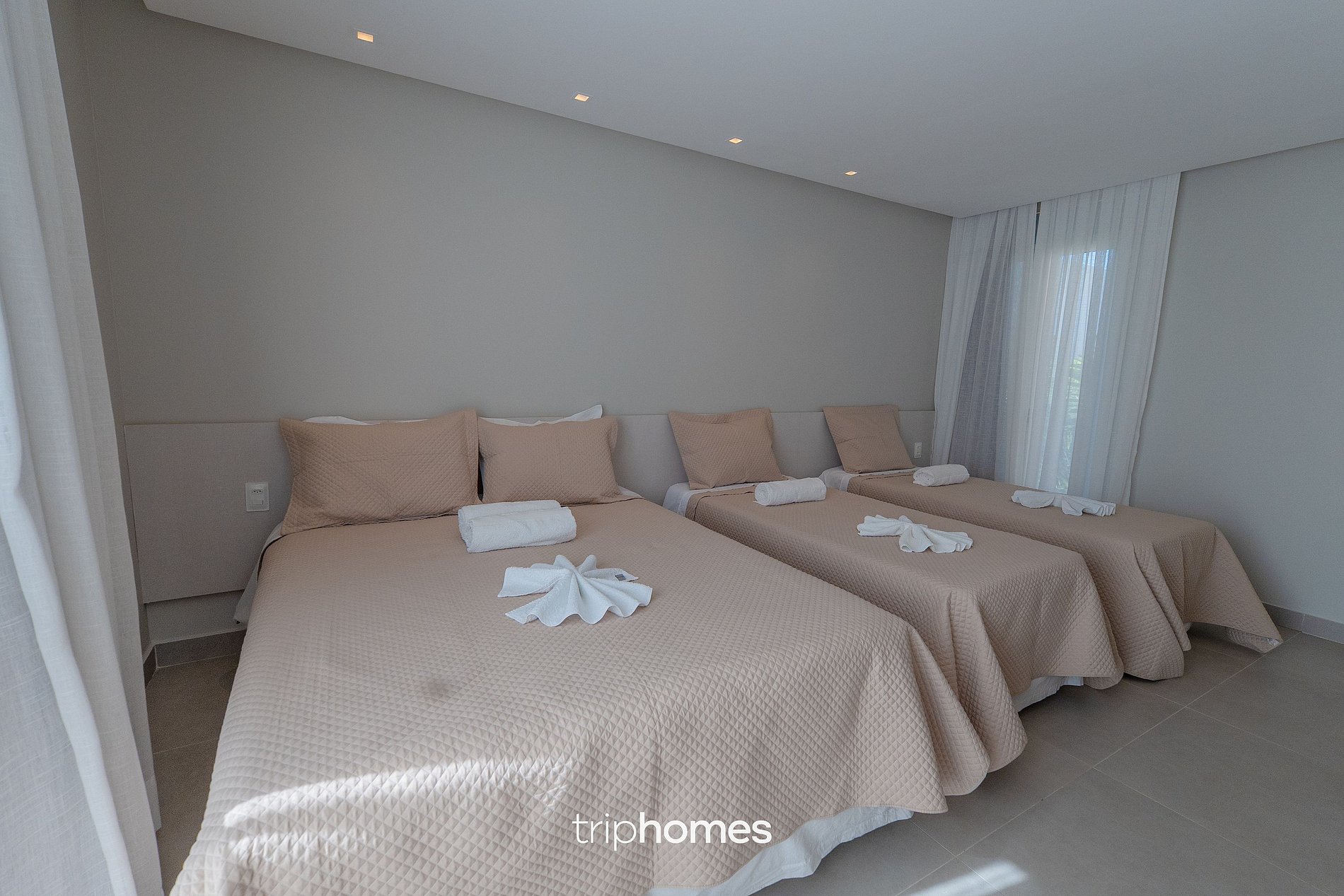 In the intimate area, the mansion comfortably accommodates large groups in its six air-conditioned suites. The ground floor suite has a queen bed and a functional structure. Upstairs, five additional suites guarantee versatility and comfort, with queen beds, single beds with auxiliary supports, cribs and spaces ranging from 4 to 6 guests per room. The Master Suite stands out with its king bed, work desk, private balcony with sea views and total exclusivity.