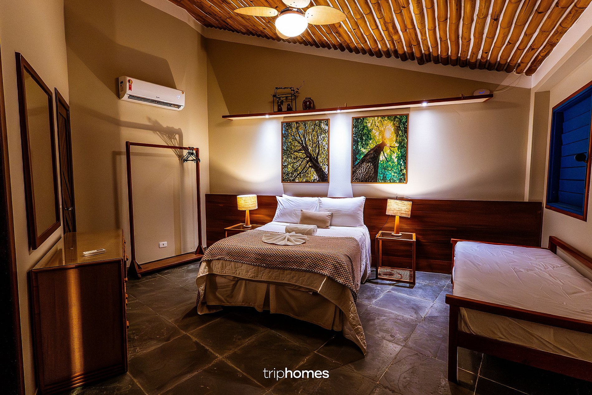 La casa principal, con una arquitectura tropical contemporánea, combina comodidad, privacidad y sofisticación en cada detalle, ideal para familias y grupos que valoran el espacio, la exclusividad y el contacto directo con la naturaleza.