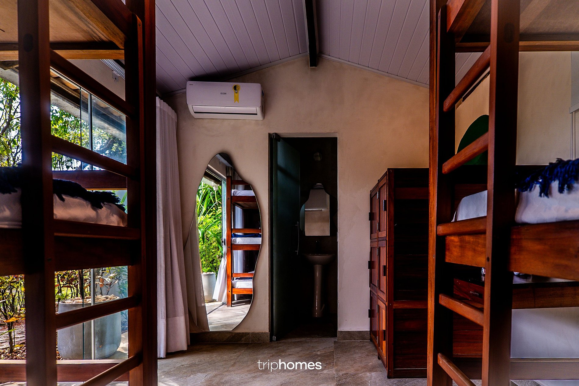 • Suite 7 – Literas: dos literas (hasta 6 huéspedes), aire acondicionado Elgin, armarios individuales, escritorio retráctil para oficina en casa, espejo de cuerpo entero y baño completo con mampara de ducha de cristal esmerilado.