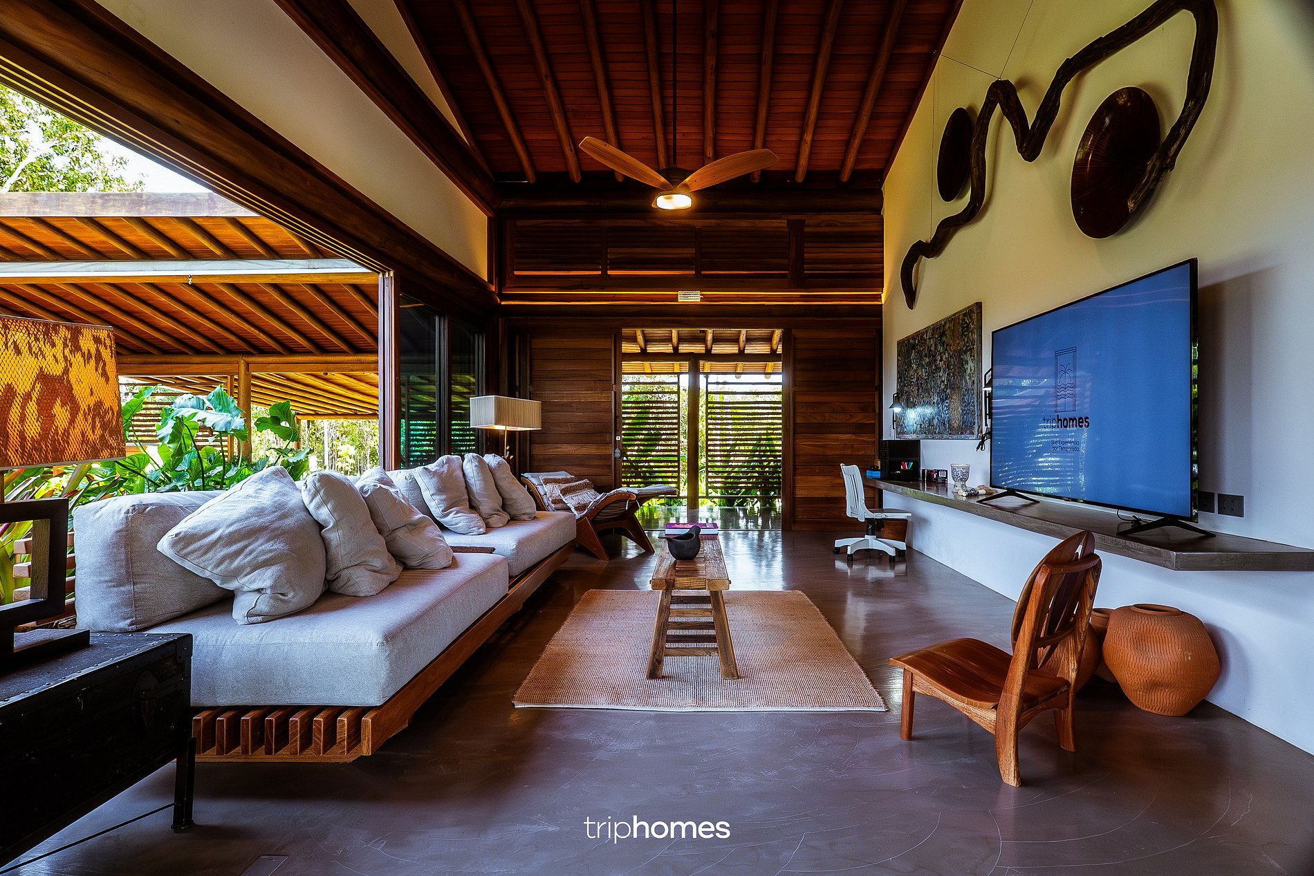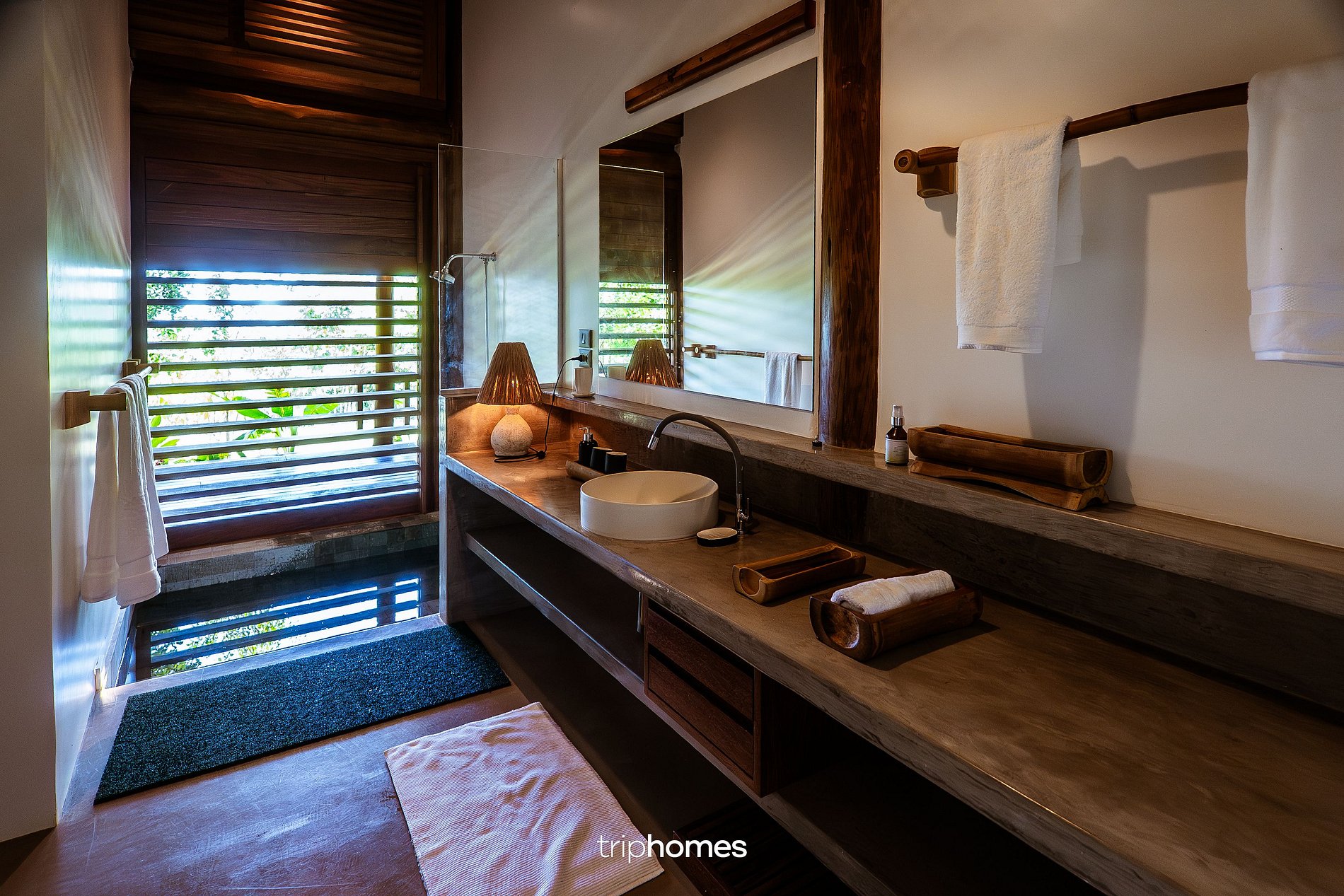 Bangalôs Vista Verde – Serra Grande es un refugio natural en la costa sur de Bahía, que combina bungalows independientes y una casa principal, todos con vista al mar y rodeados por la Mata Atlántica. La propiedad combina arquitectura rústica y contemporánea con total comodidad e integración con la naturaleza, ofreciendo una experiencia exclusiva para familias y grupos.Ubicación: Serra Grande – Costa Sur de Bahía (entre Ilhéus e Itacaré) Composición: Casa Principal + Bungalow 1 + Bungalow 2