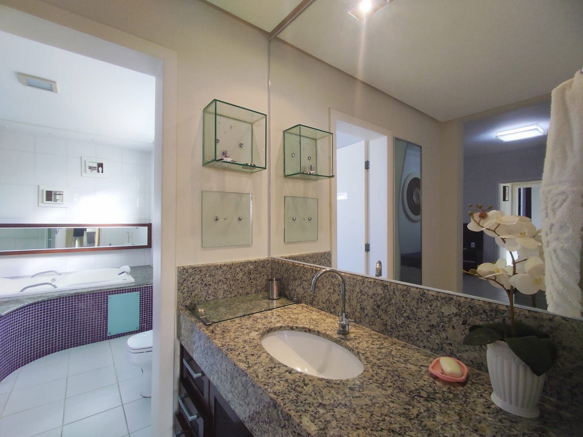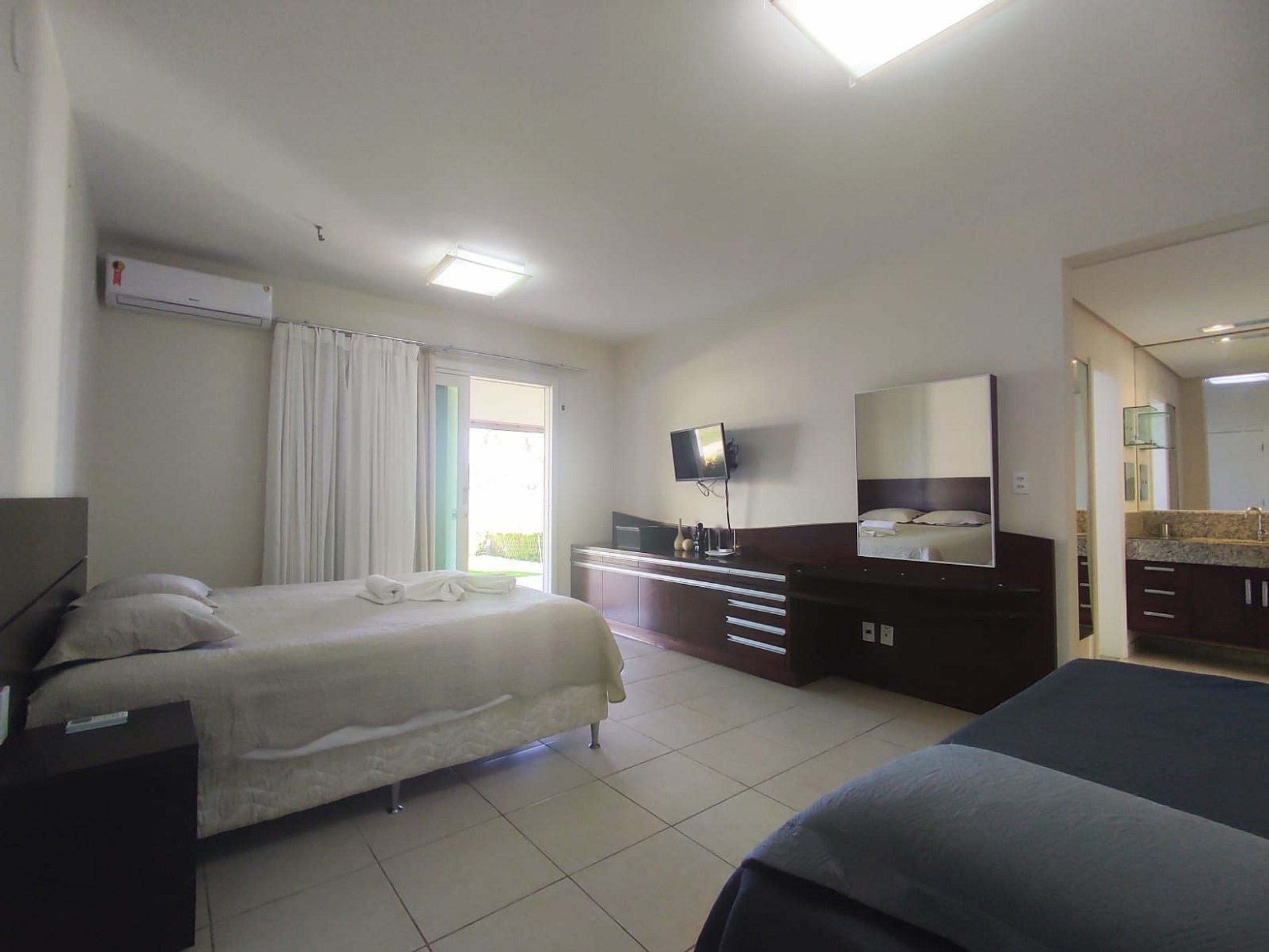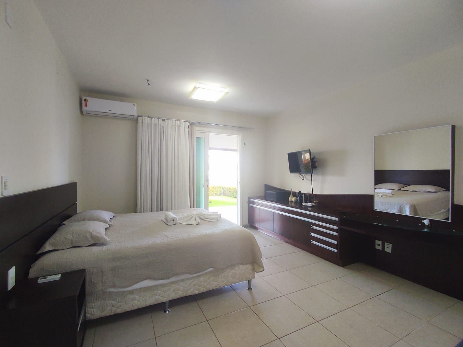 São 6 suítes todas com ar-condicionado e chuveiro elétrico, kit completo de cama e banho, 1 quarto de serviço.