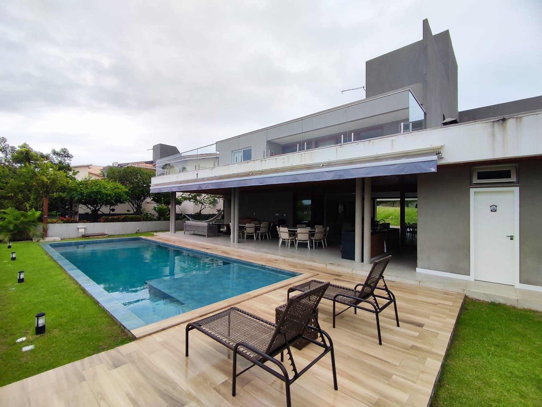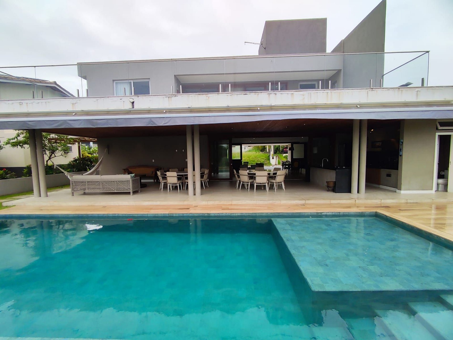 Mansão de luxo em condomínio de praia, arquitetura moderna e sofisticada.