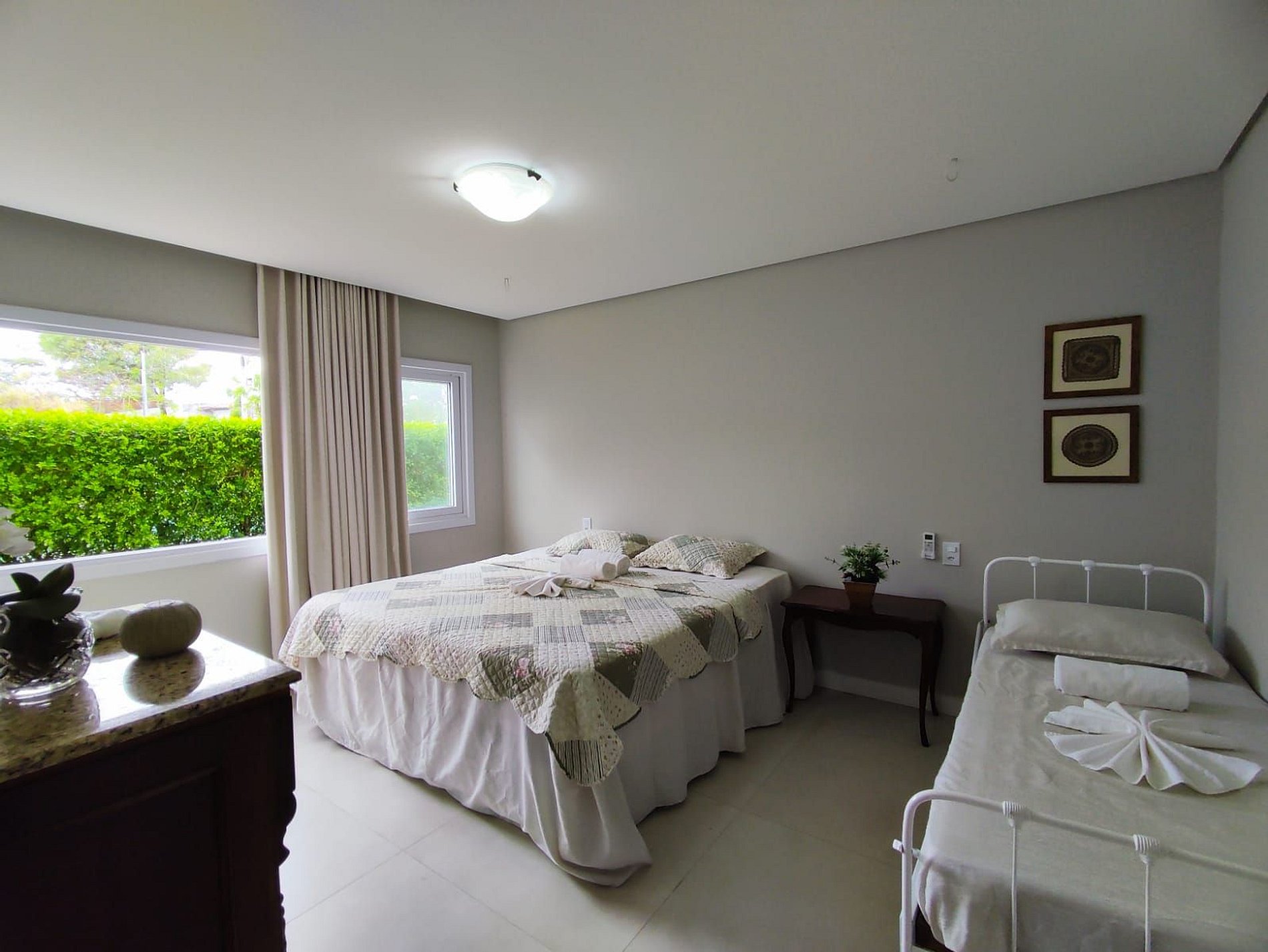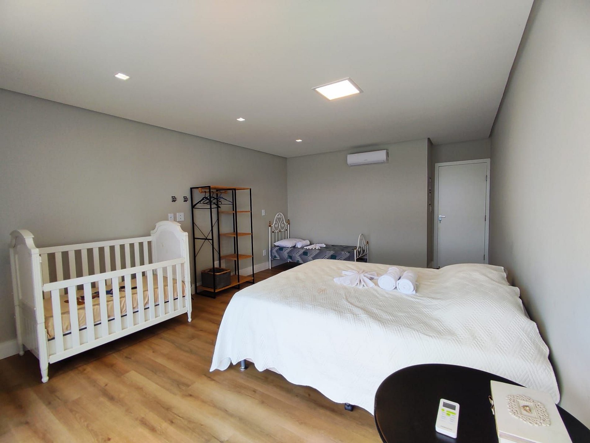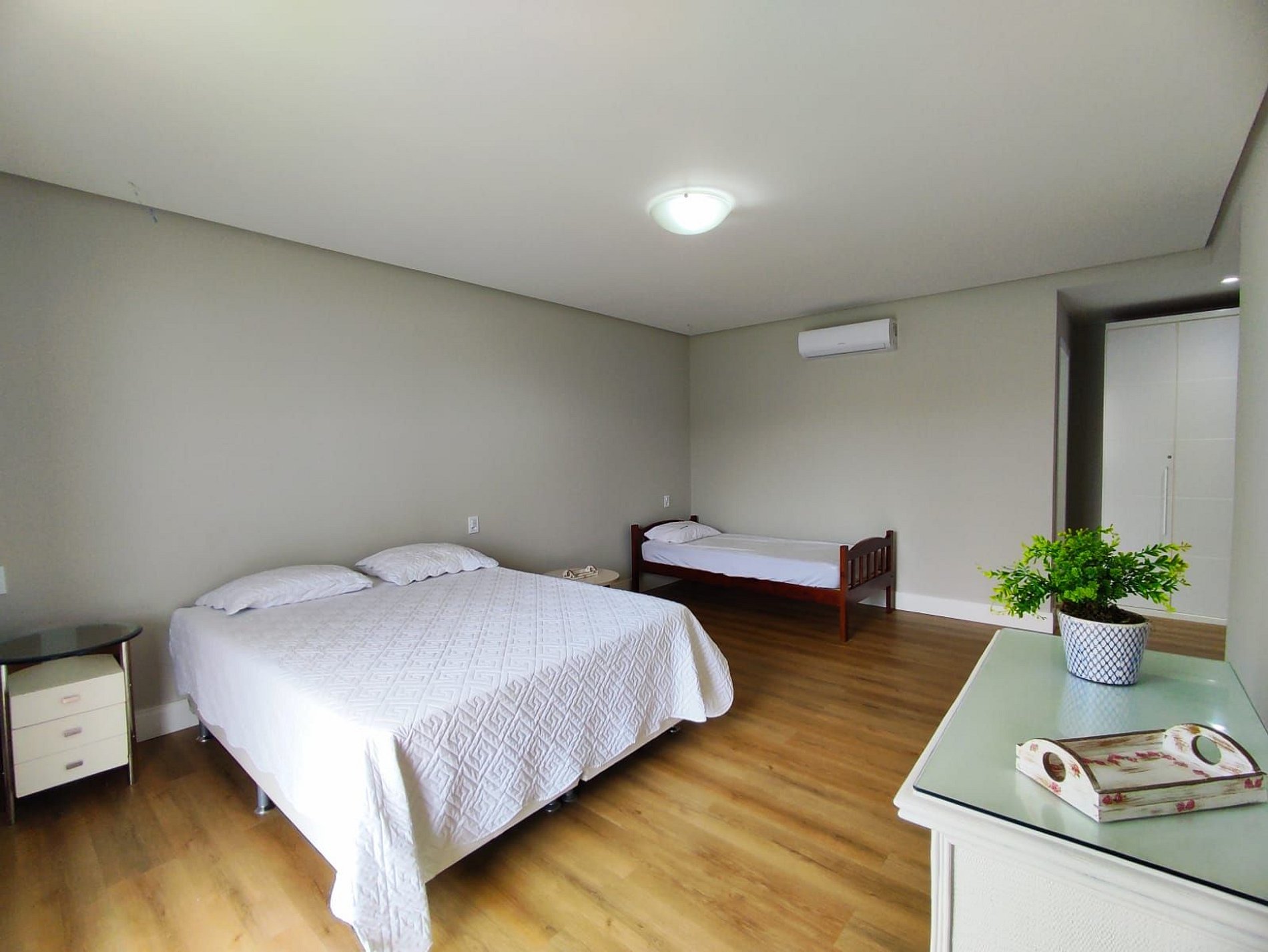 São 7 suítes todas com ar-condicionado e chuveiro elétrico, kit completo de cama e banho.