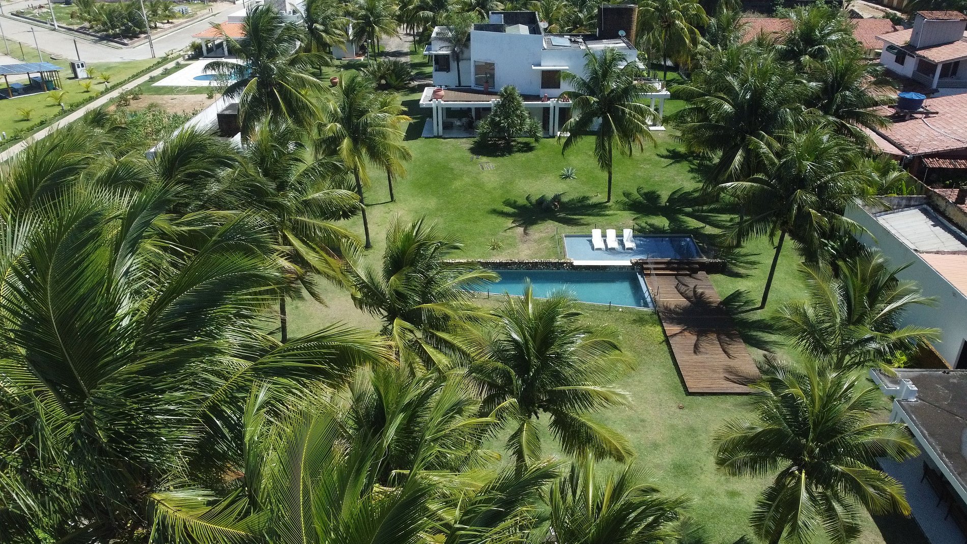 Mansión frente al mar, frente a las piscinas naturales de Paripueira. Rodeada de jardines tropicales, cocoteros y un horizonte azul infinito, combina una arquitectura contemporánea blanca, líneas curvas y grandes aberturas que integran el interior y la naturaleza. La piscina con terraza, el amplio césped y los ambientes iluminados crean una atmósfera ligera, mediterránea y sofisticada junto al mar.