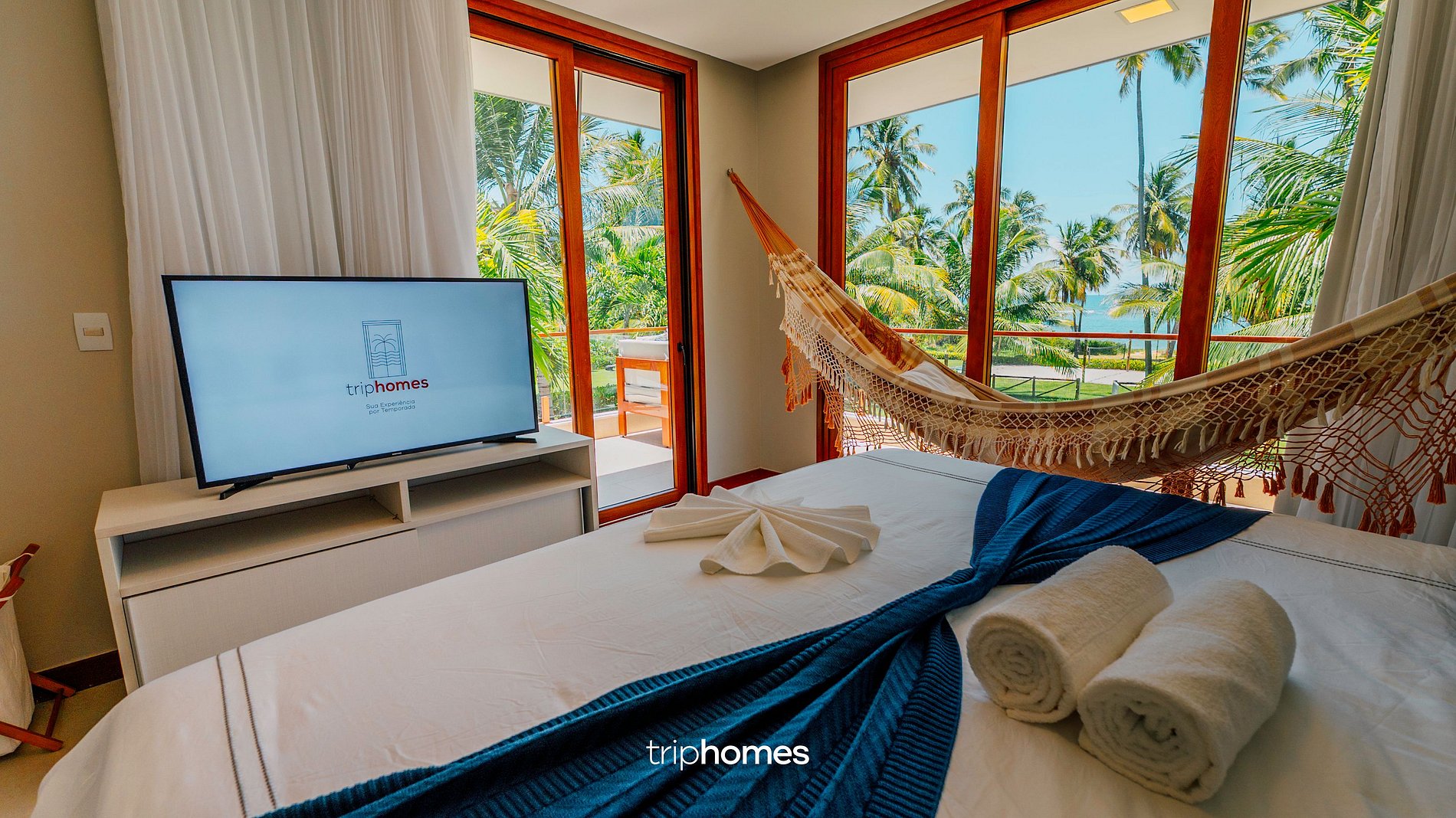 Suite 4 (Master): 4 huéspedes | Cama King + dos soportes auxiliares | TV 50» | Hamaca en dormitorio | Balcón con vista al mar | Sillones acolchados