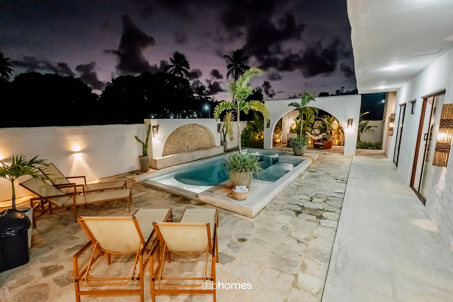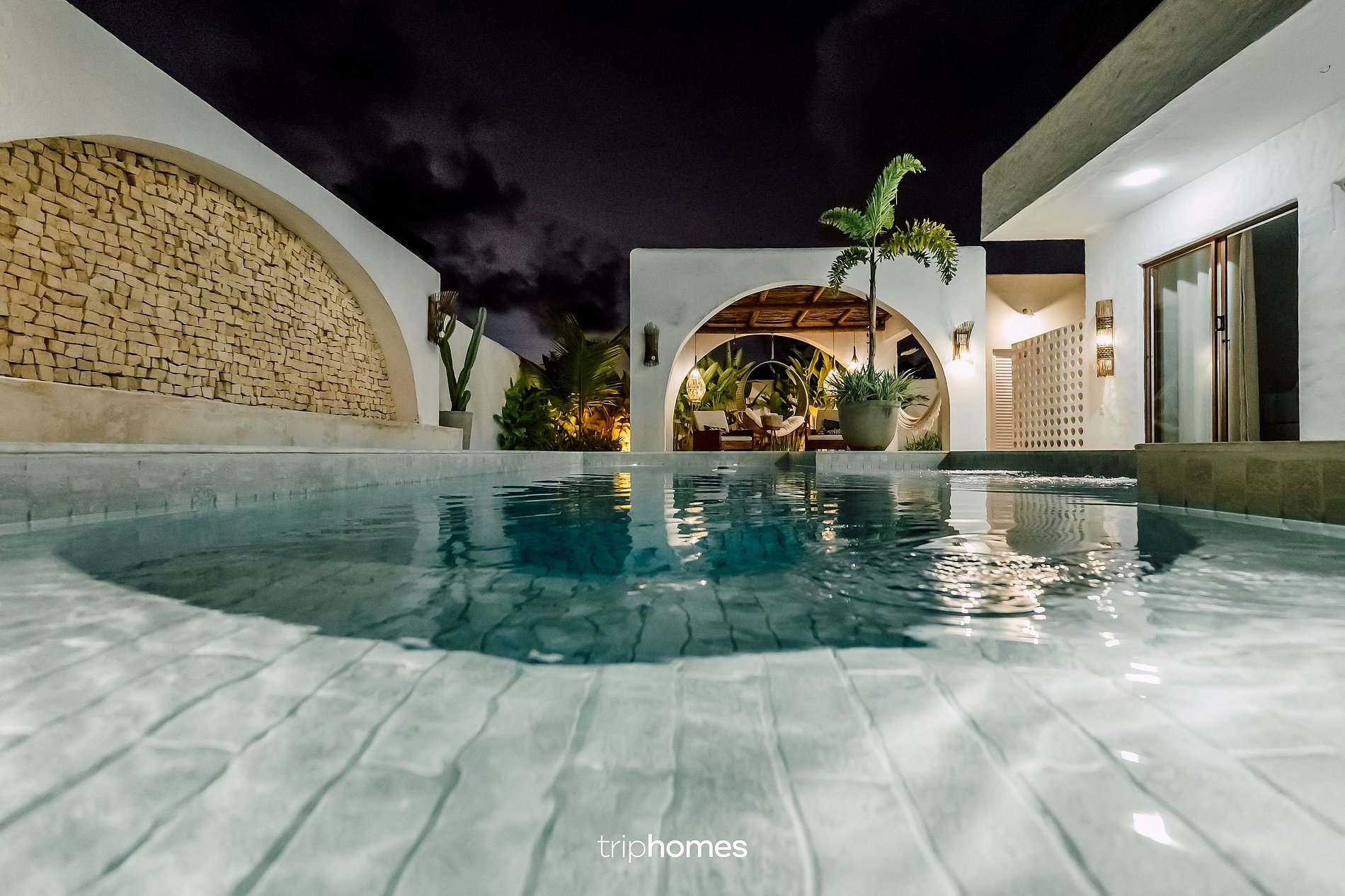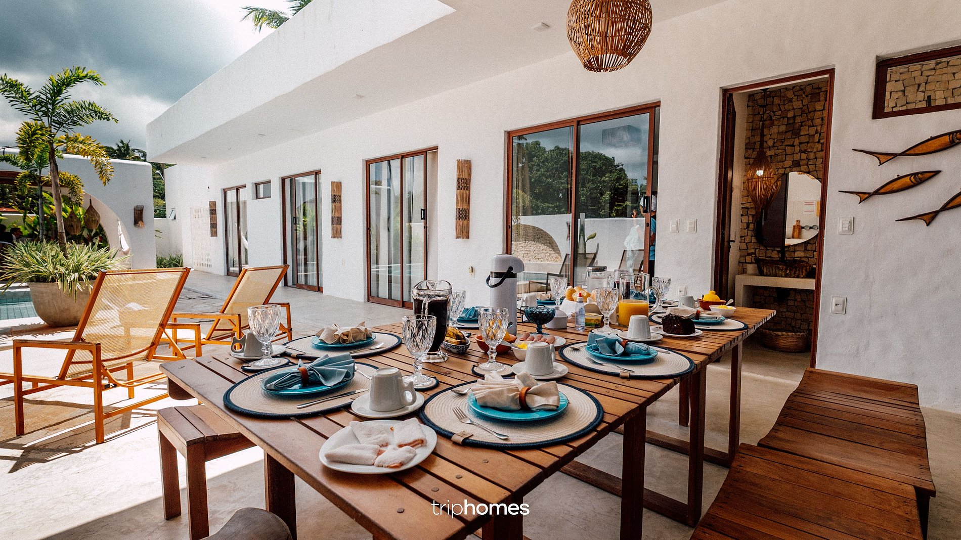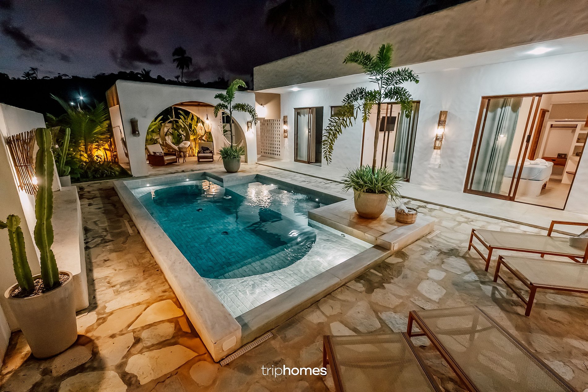 Despierte con el suave canto de los pájaros y sienta la luz del sol iluminando el patio central, donde las palmeras se mecen con la brisa y una piscina cristalina refleja el cielo azul. Esta casa le invita a experimentar el estilo de vida de las islas griegas con la cálida hospitalidad de Brasil.