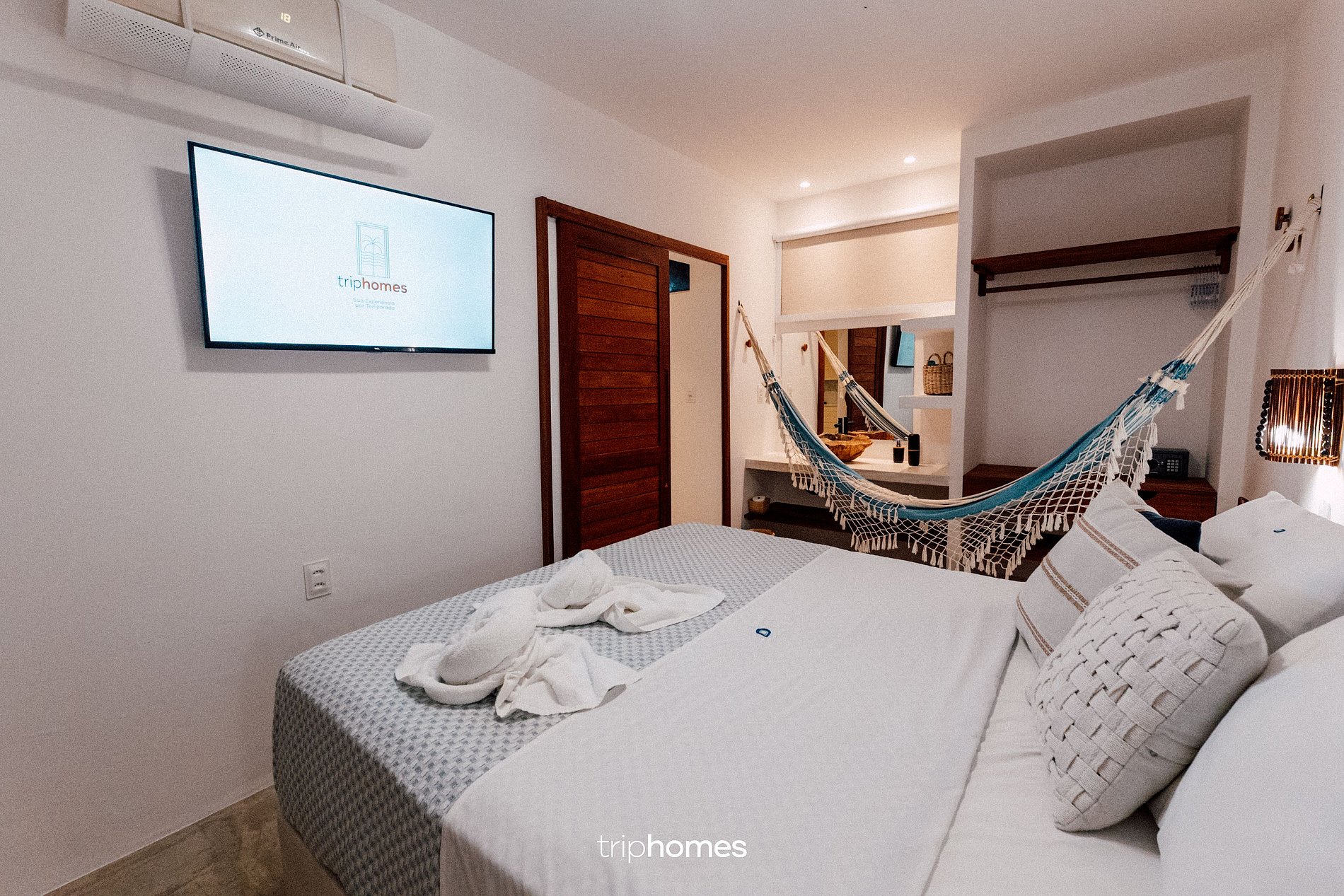• Cada suite: cama doble con sofá cama, TV de 50 pulgadas, aire acondicionado, caja fuerte, armario y baño privado.
