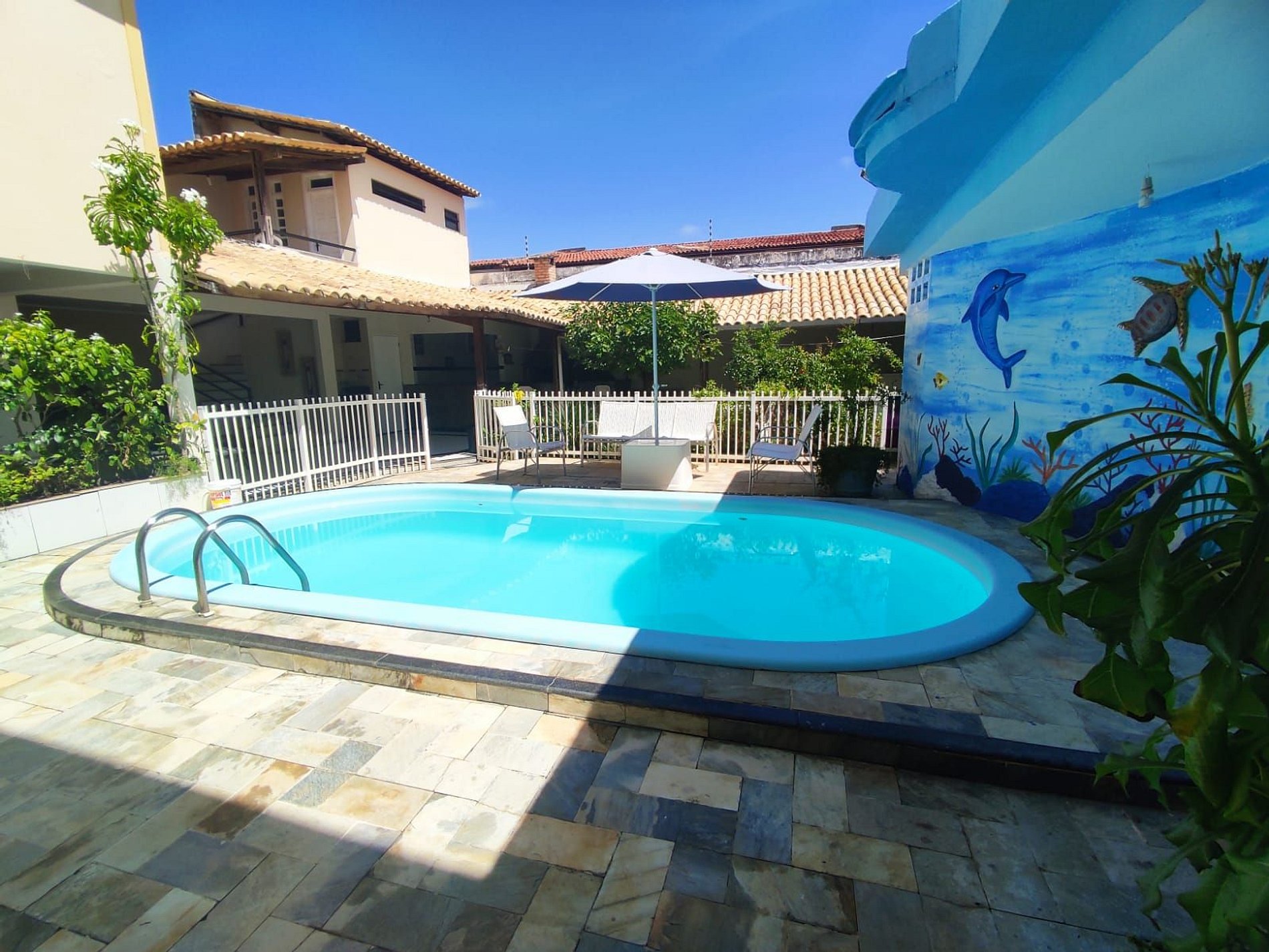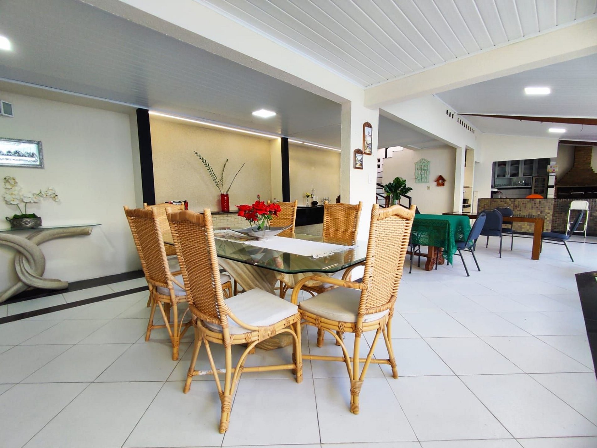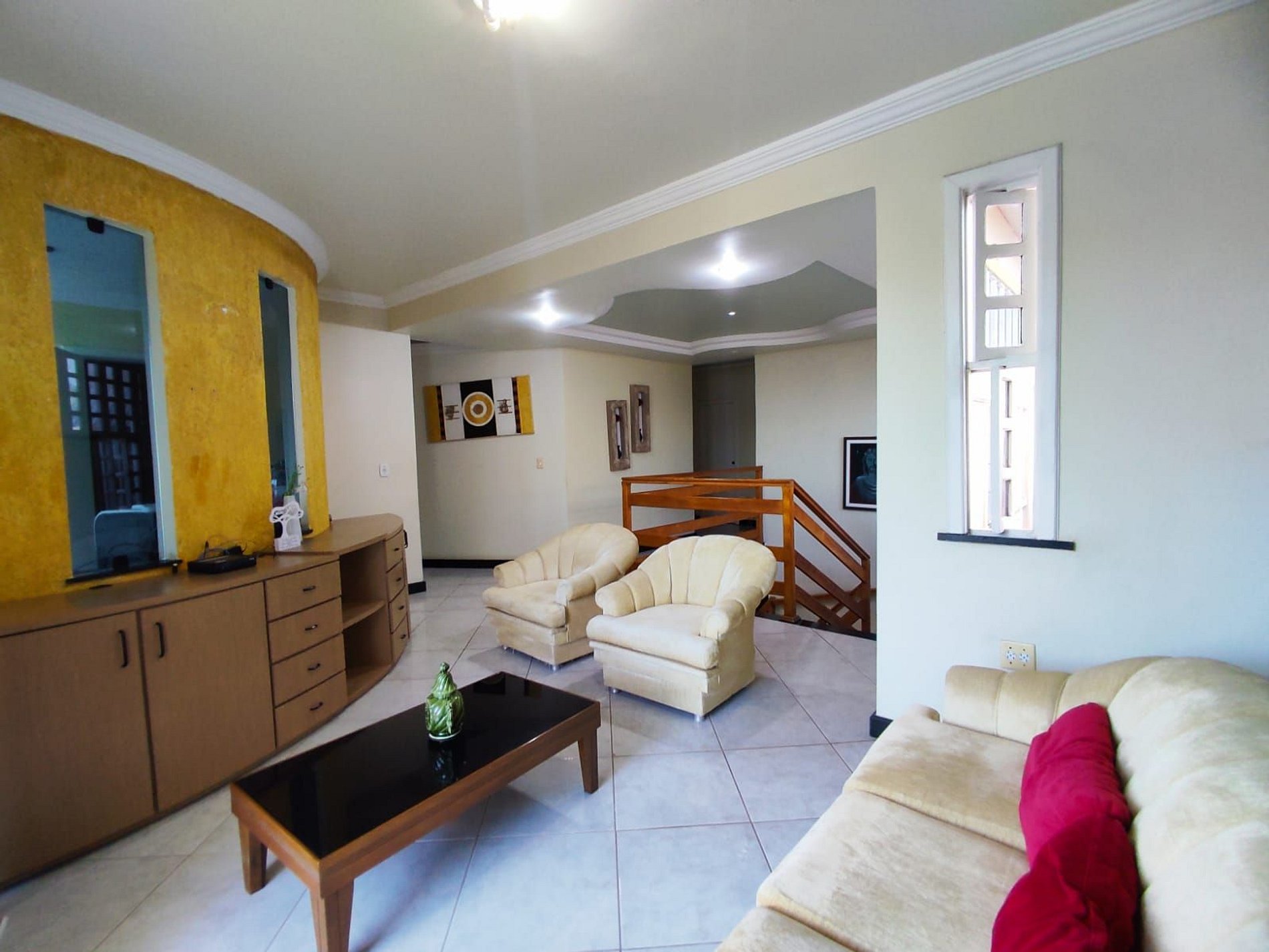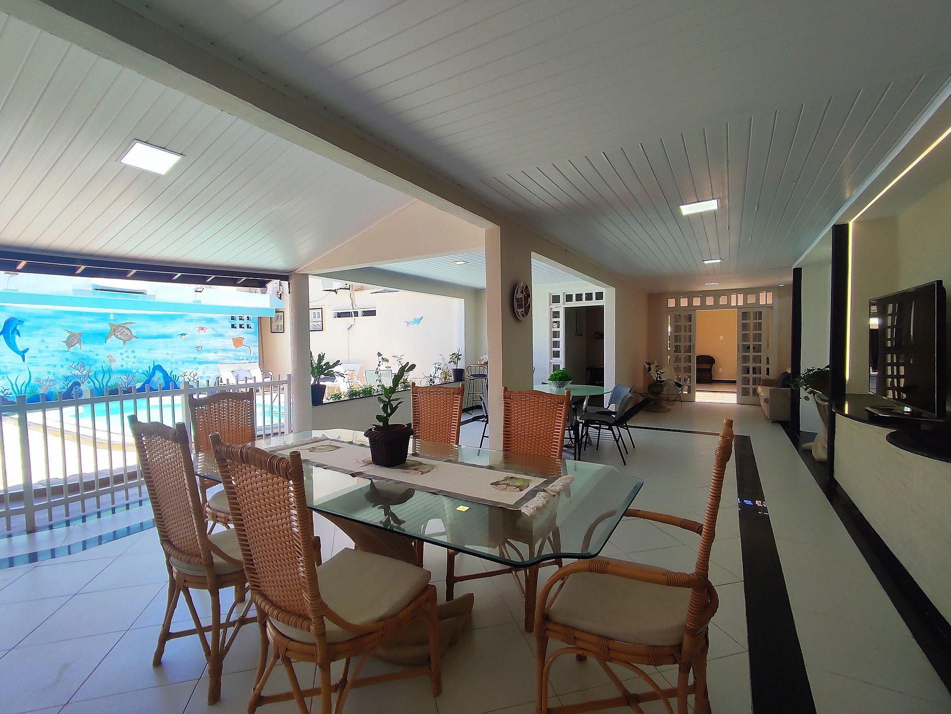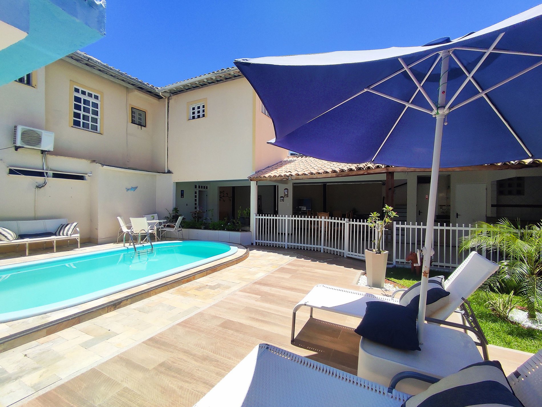 São 5 suítes todas com ar condicionado, sala de estar com TV Smart sofás, internet fibra óptica.