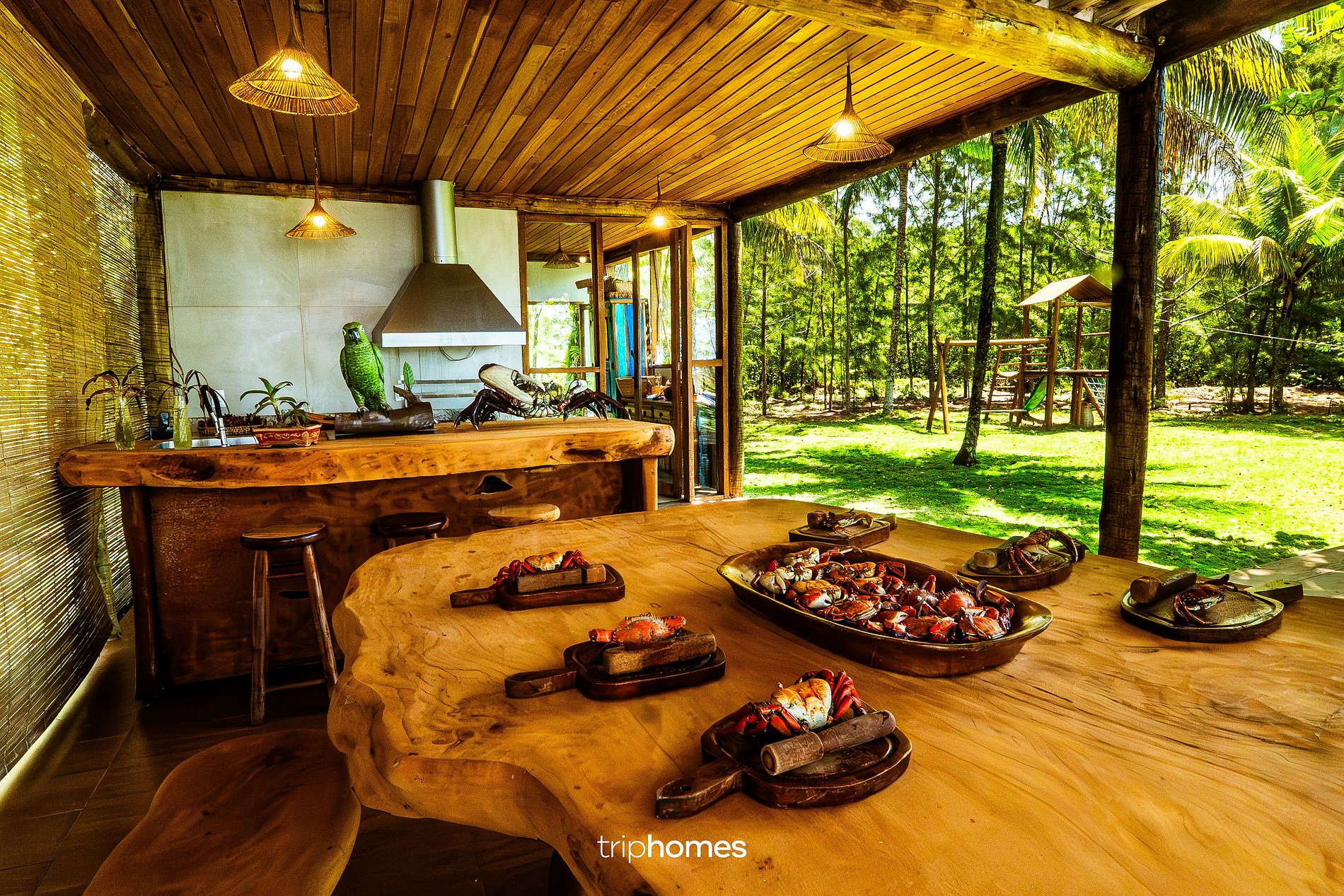 Integrado à natureza, o espaço gourmet foi planejado para refeições ao ar livre.