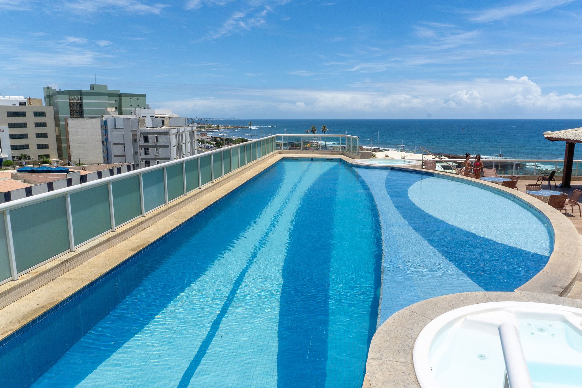 O condomínio oferece uma área de lazer completa, ideal para relaxar e aproveitar a estadia. Conta com piscina com vista para a praia, banheira de hidromassagem e jacuzzi, perfeitas para momentos de descanso. Para quem viaja com crianças, há playground infantil, e para manter a rotina de exercícios, o espaço dispõe de academia equipada. Tudo isso em um ambiente seguro, organizado e agradável, no bairro da Pituba, em Salvador.