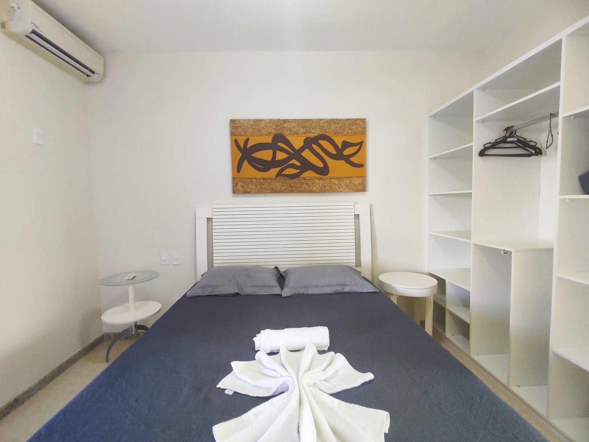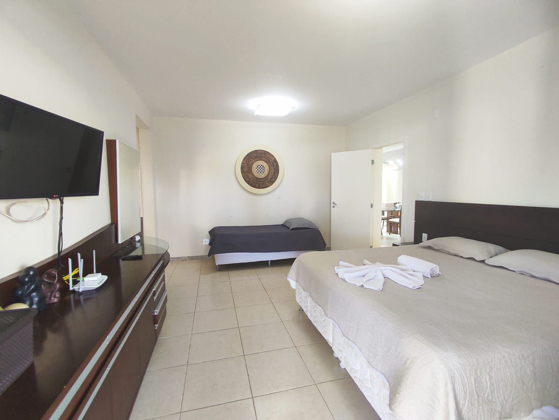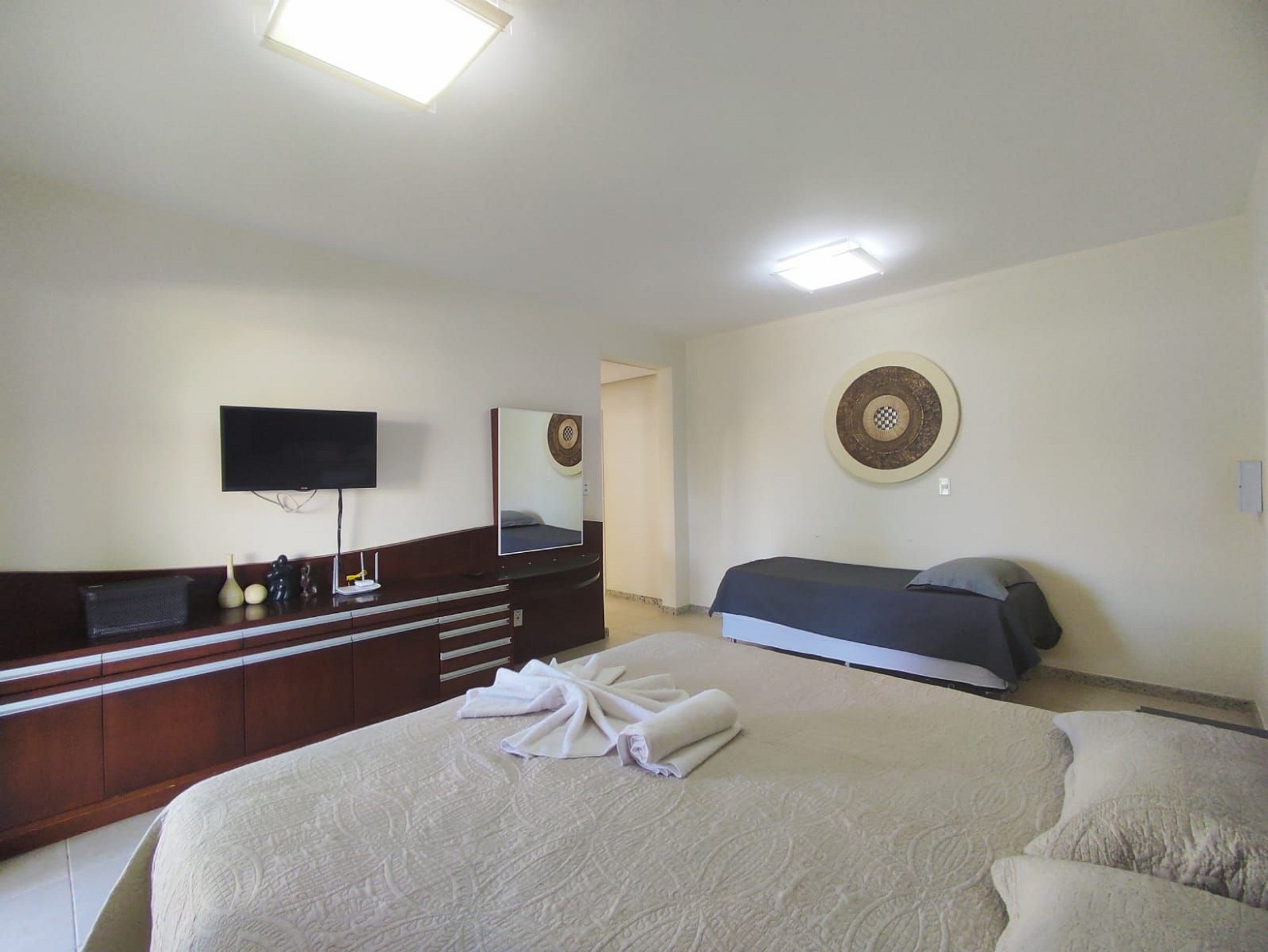 São 6 suítes todas com ar-condicionado e chuveiro elétrico, kit completo de cama e banho, 1 quarto de serviço.