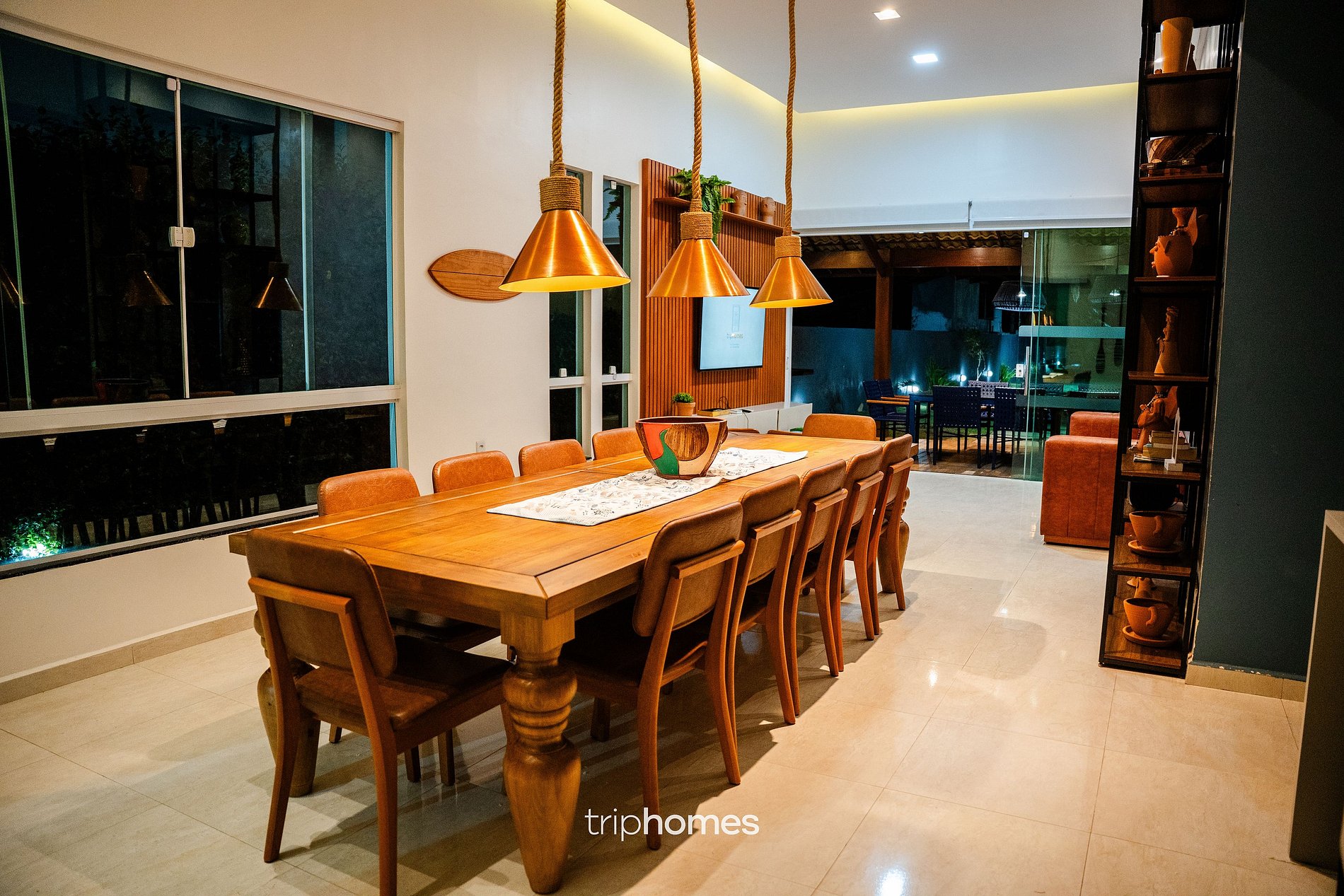 Área gourmet e convivência Perfeita para reunir família e amigos. • Mesa de jantar interna para 12 pessoas • Mesa externa na varanda para 12 pessoas • Duas áreas de churrasqueira (uma delas frente ao mar) • Som JBL • Smart TV • Wi-Fi