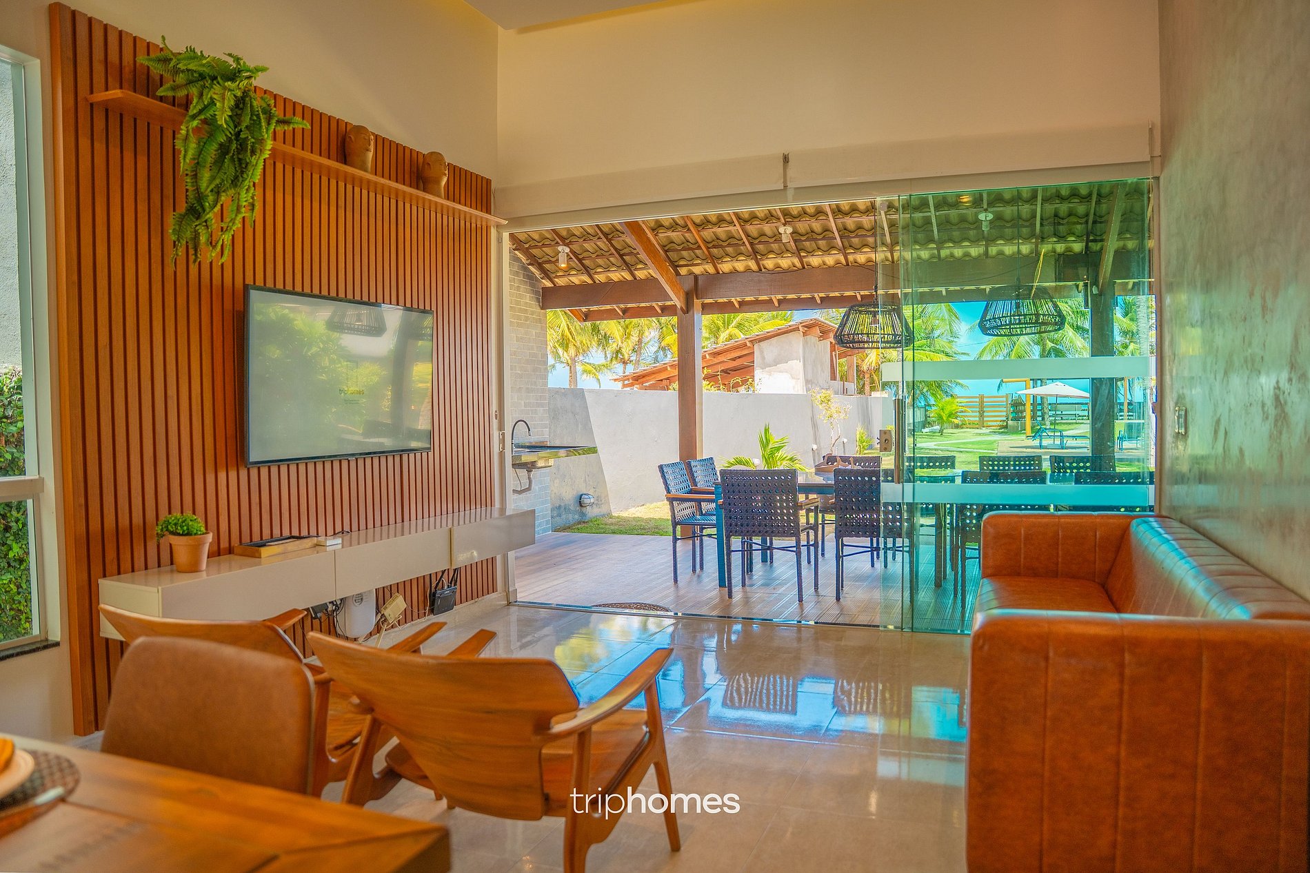 O grande destaque da casa é o amplo jardim com coqueiros e acesso direto à praia. • Piscina com área infantil • Espreguiçadeiras • Redes de descanso • Chuveirão externo • Caiaques • Boias e macarrões de piscina • Pergolados e áreas de sombra • Acesso direto à praia