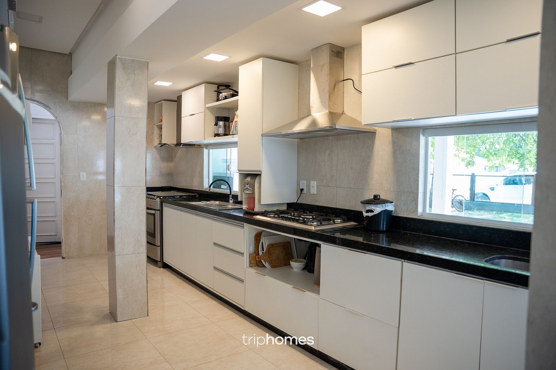 Cozinha completa: Totalmente equipada para estadias prolongadas ou refeições em grupo. • 3 fogões • 1 forno (industrial) • 3 geladeiras + freezer • 2 freezers adicionais • 2 refrigeradores de cerveja • 2 bebedouros • Fritadeira a ar • Cafeteira Três Corações • Micro-ondas • Sanduicheira • Conjunto completo de utensílios de cozinha