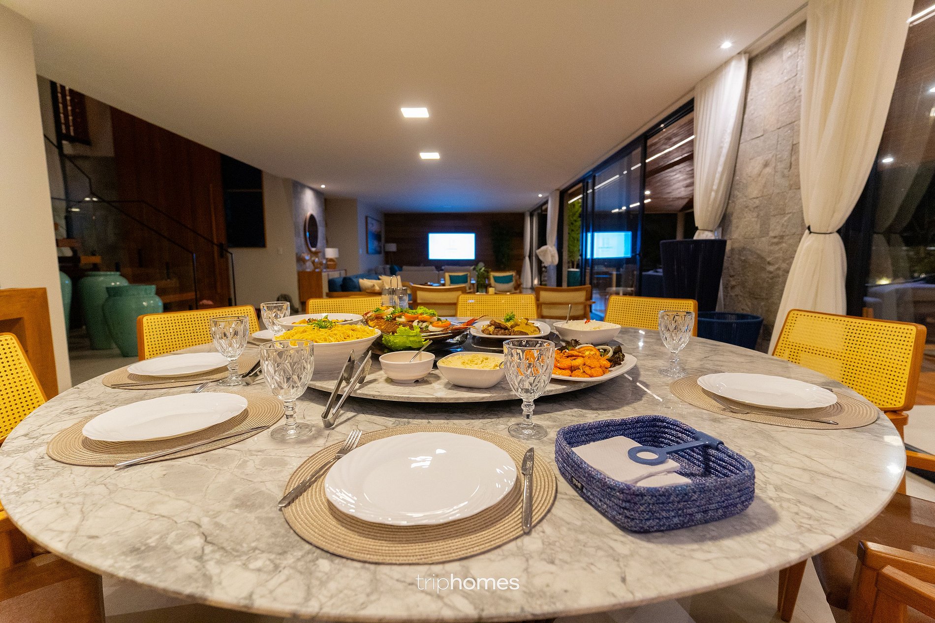 Bem-vindo à Mansão Premium Frente-Mar Iberostar, uma casa moderna e recém-construída à beira-mar na deslumbrante Praia do Forte, Bahia. Esta residência luxuosa oferece o máximo em conforto e elegância, com vistas deslumbrantes e panorâmicas para o mar, coqueirais e o campo de golfe do condomínio IBEROSTAR Praia do Forte.