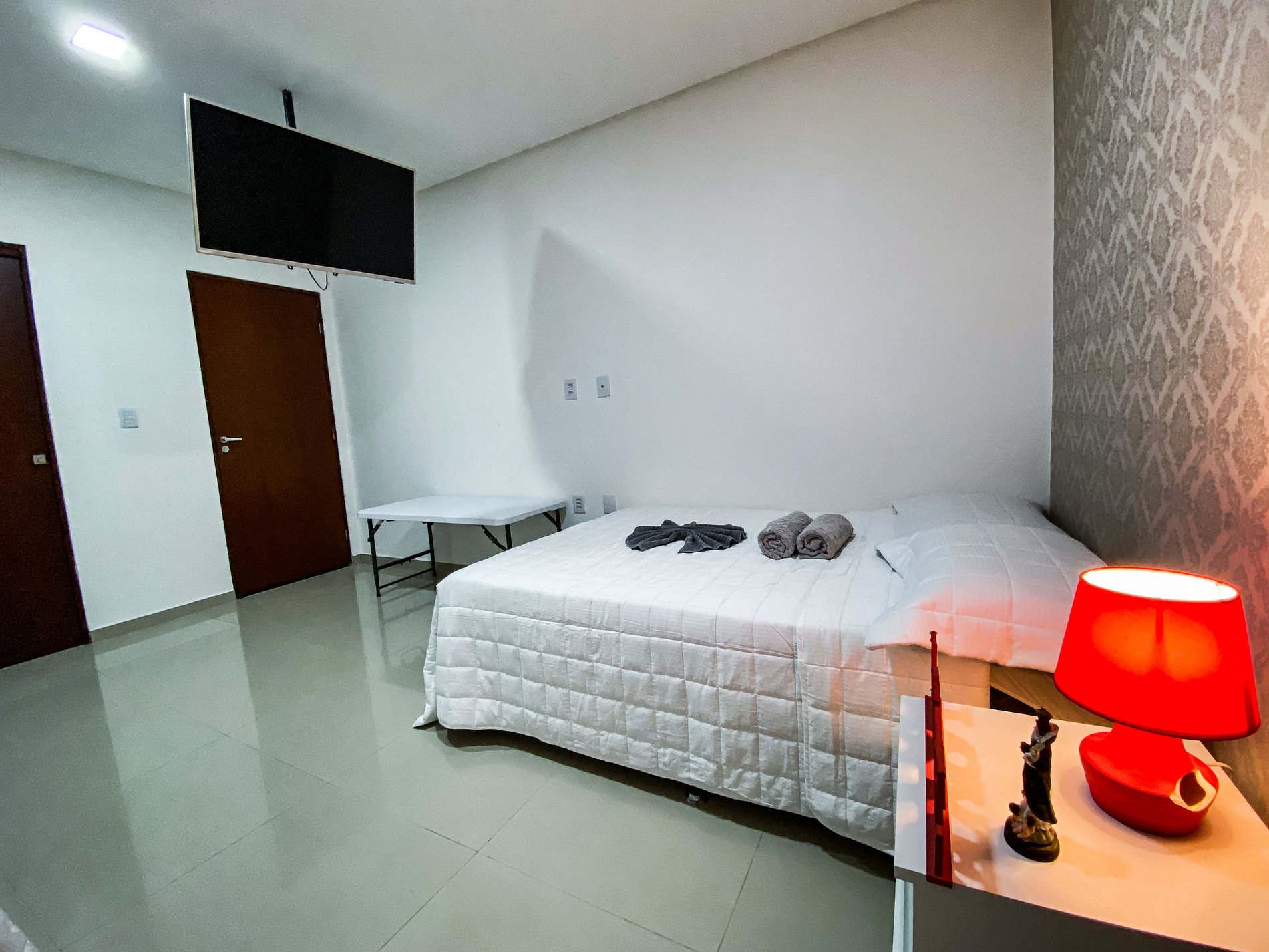 São 4 quartos sendo 2 suítes, todos com ar-condicionado, chuveiro elétrico e enxoval completo (roupa de cama e banho).