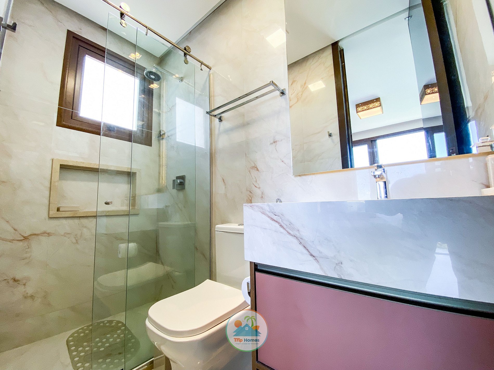 A área de lazer externa tem um espaço magnífico em mármore e granito, uma hidro e piscina sensacionais com destaque para a borda transparente e infinita, proporcionando um vislumbre extraordinário do pôr do sol. Um deck de madeira maravilhoso integrado à área gourmet com churrasqueira, SMARTV de 80 polegadas, som ambiente surround, cadeiras e espreguiçadeiras de luxo, e um balanço para você se registrar nesse ambiente simplesmente fantástico.