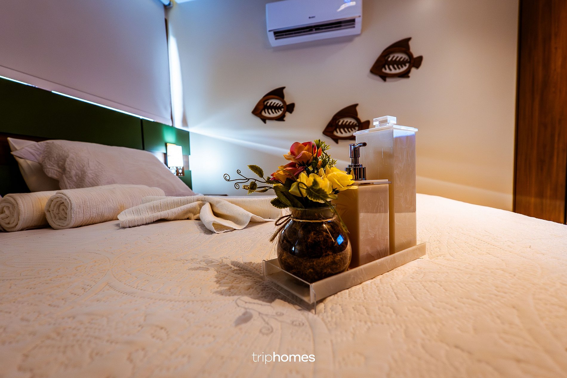 As 6 suítes todas decoradas com elegância, modernidade e conforto, sendo assim, com lençóis e toalhas Premium.