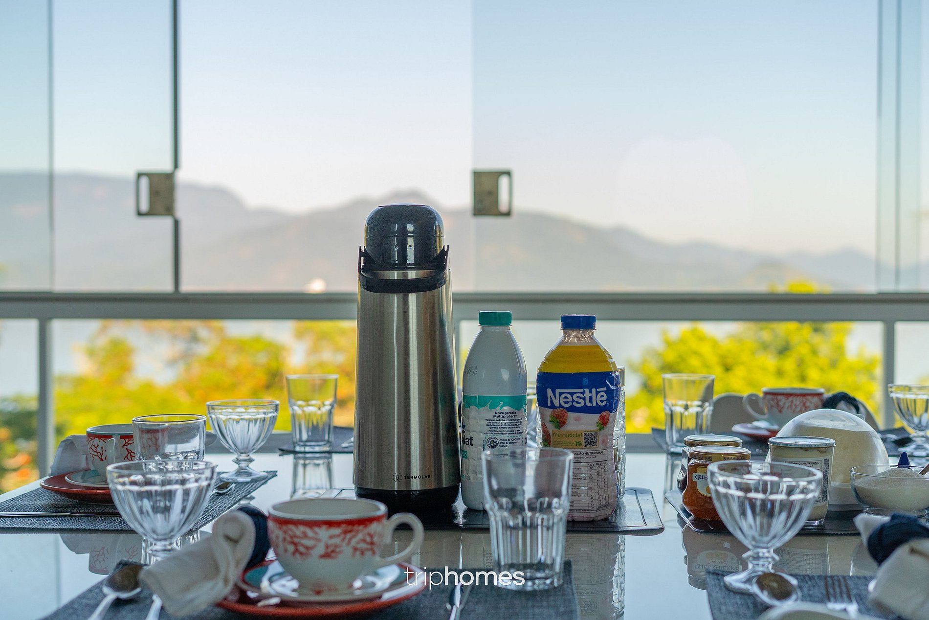 A casa possui uma equipe de staff própria para atendimento aos hóspedes.