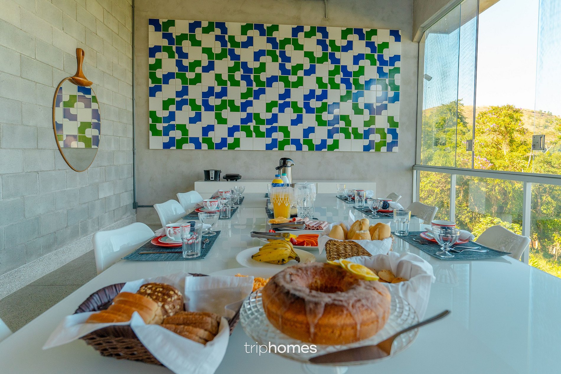 A casa possui uma equipe de staff própria para atendimento aos hóspedes.