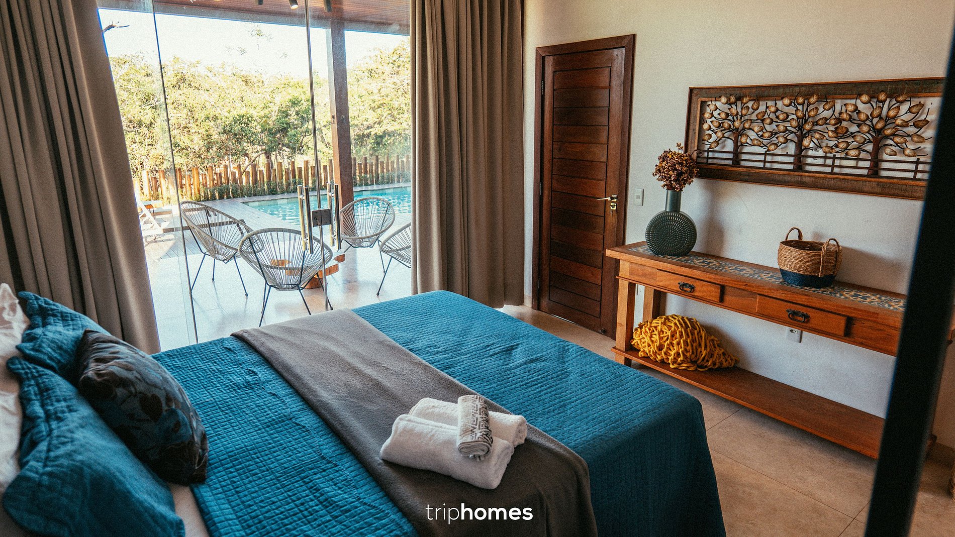 4 suítes confortáveis, todas equipadas com ar-condicionado, oferecendo privacidade e conforto para os hóspedes