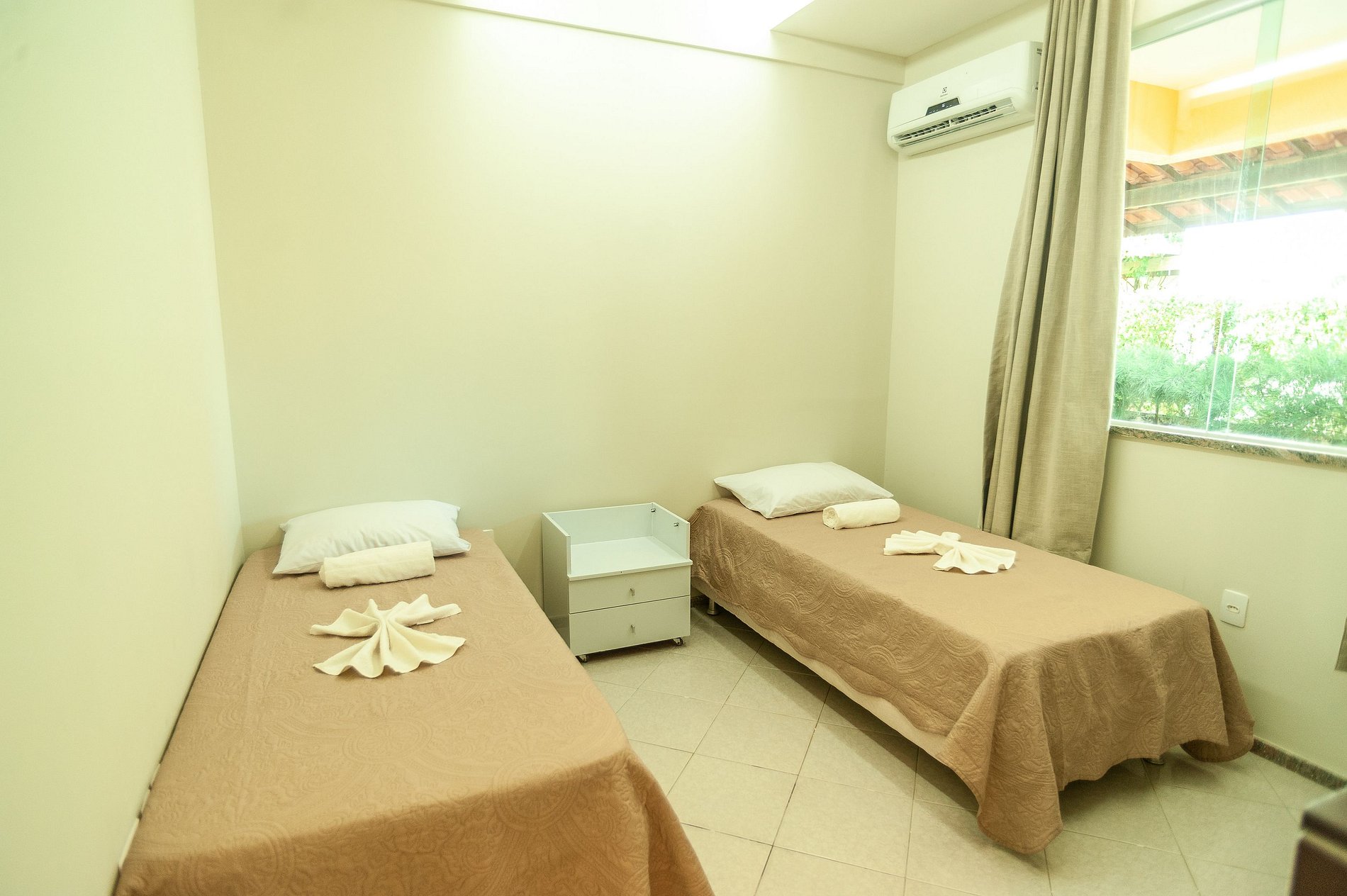 São 4 quartos sendo 2 suítes, todas climatizadas, roupas de cama e banho.