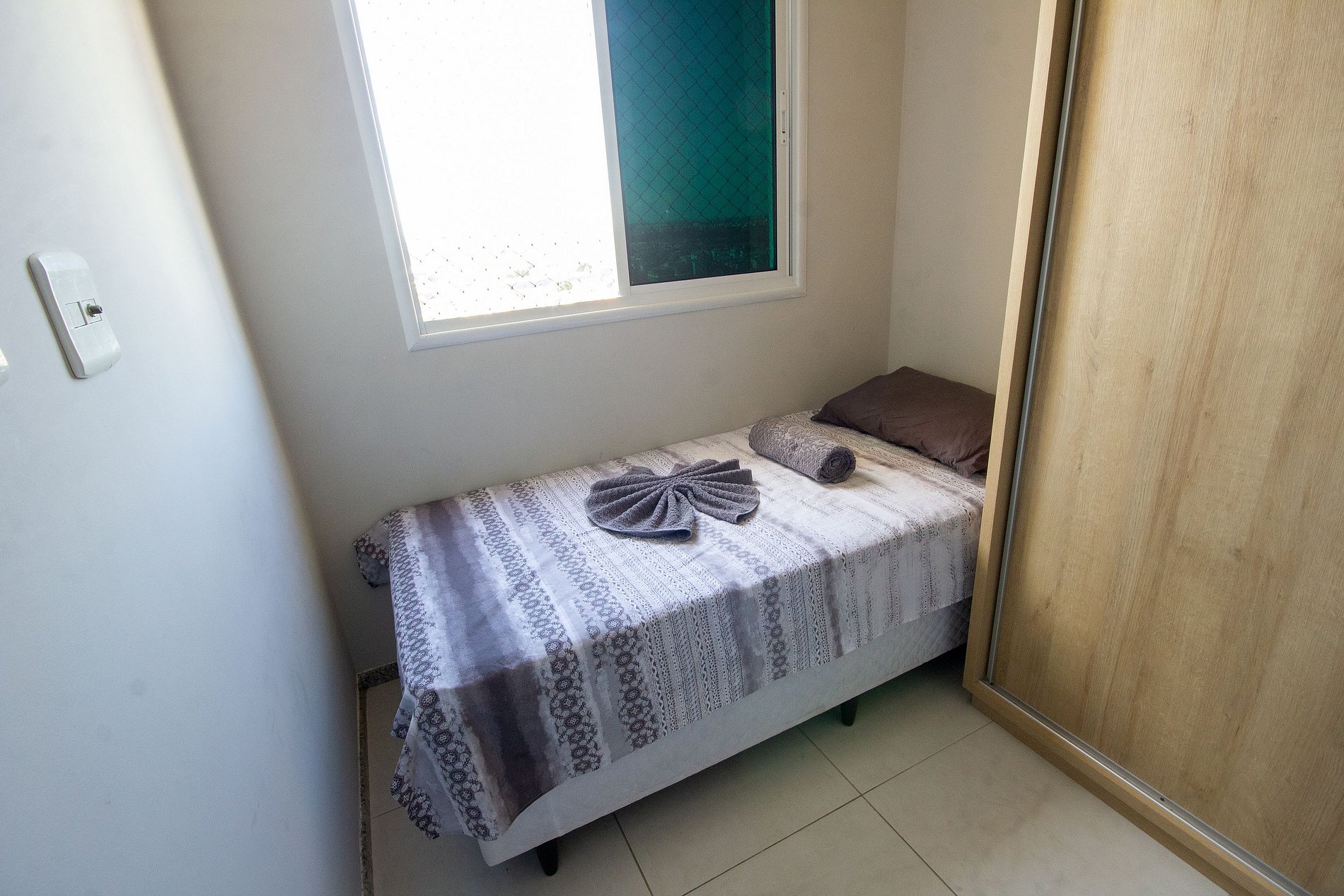 São dois quartos sendo 1 suíte, todos com ar condicionado, camas extremamente confortáveis com lençol, cobertor e travesseiros. Apartamento tem ar condicionado central na sala.