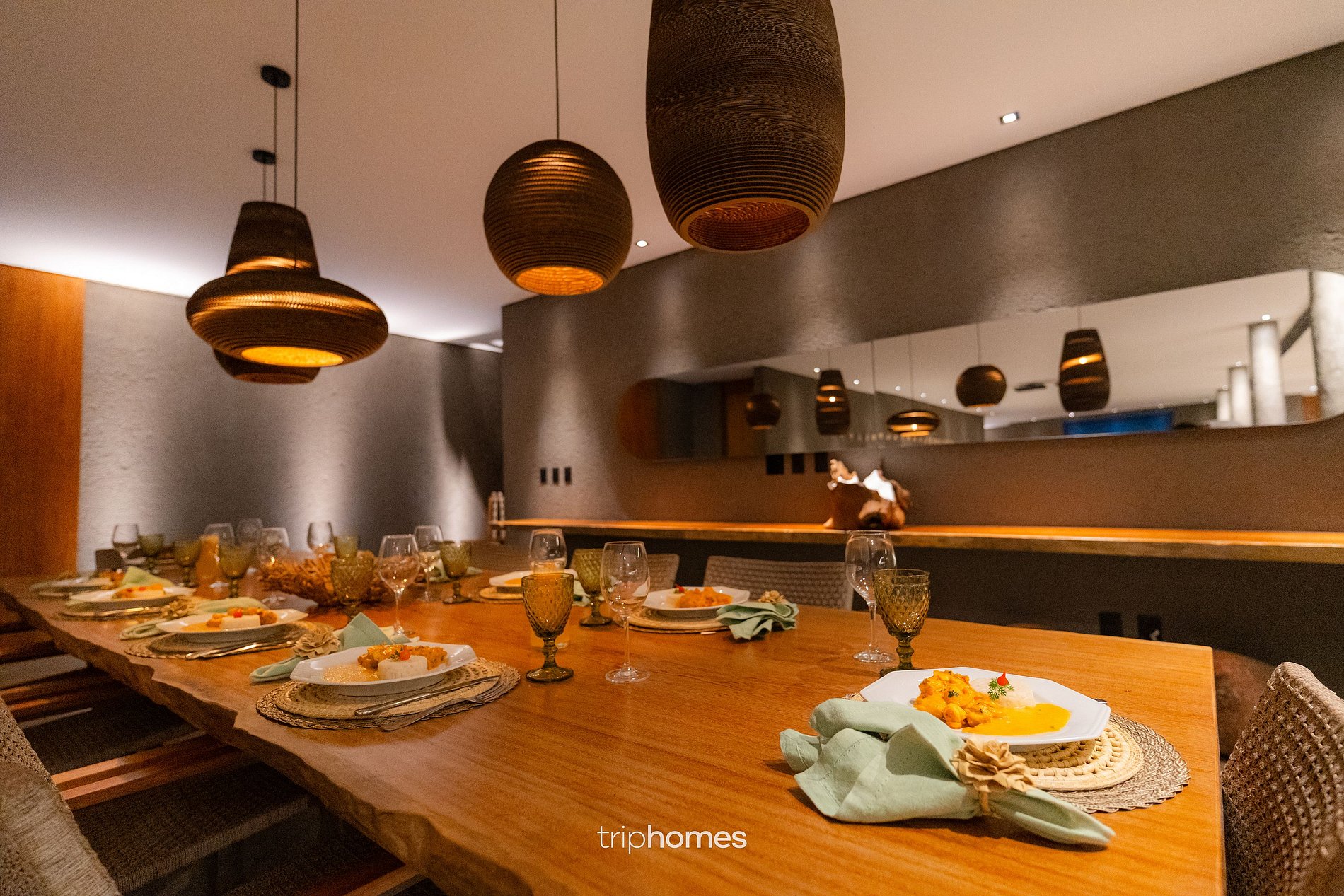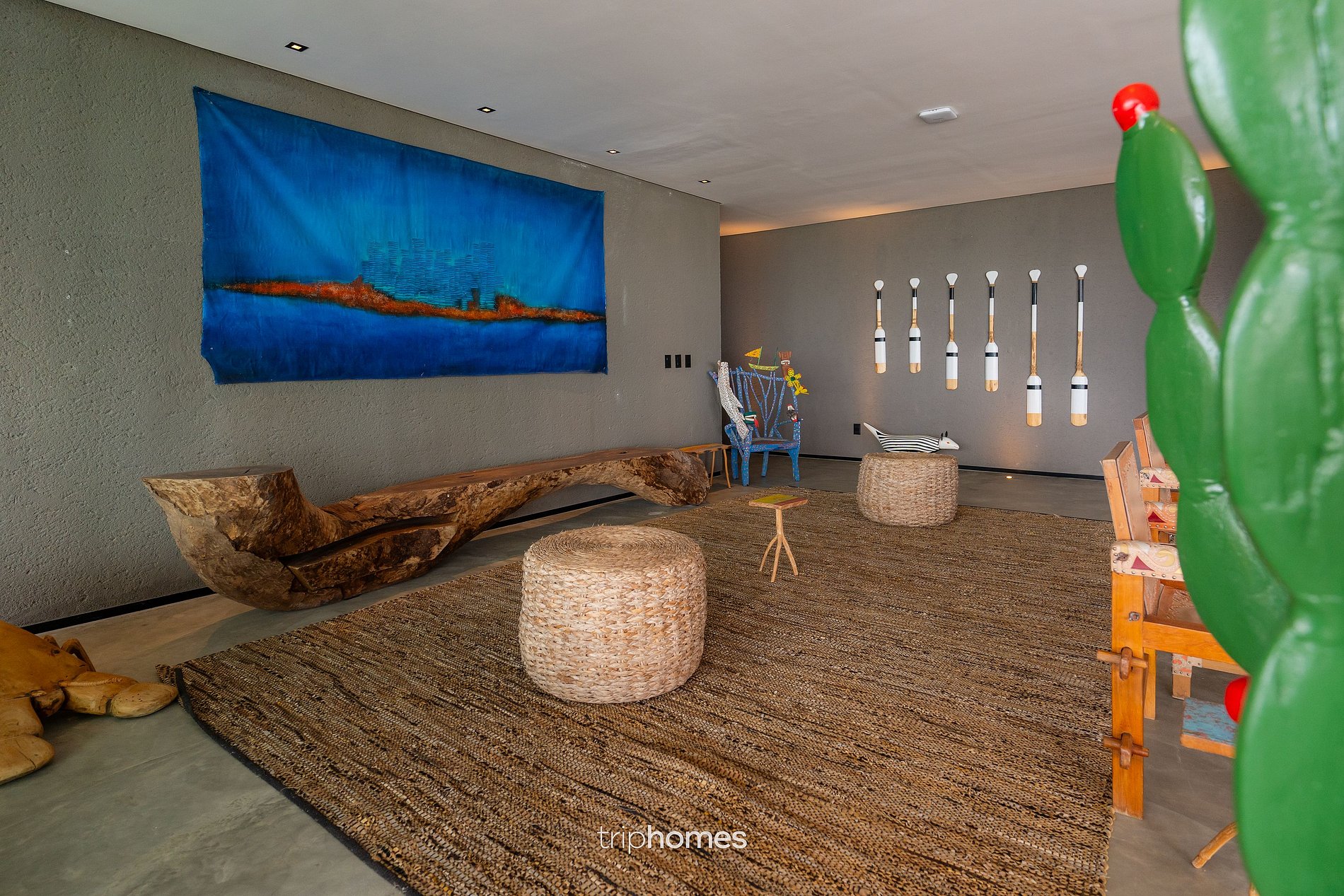 A área gourmet, equipada com churrasqueira americana e bar, convida a momentos de confraternização e experiências sensoriais únicas. Deste lounge pé na areia, contemple vistas deslumbrantes e sinta a brisa suave do mar, garantindo uma atmosfera de tranquilidade e conexão com a natureza.
