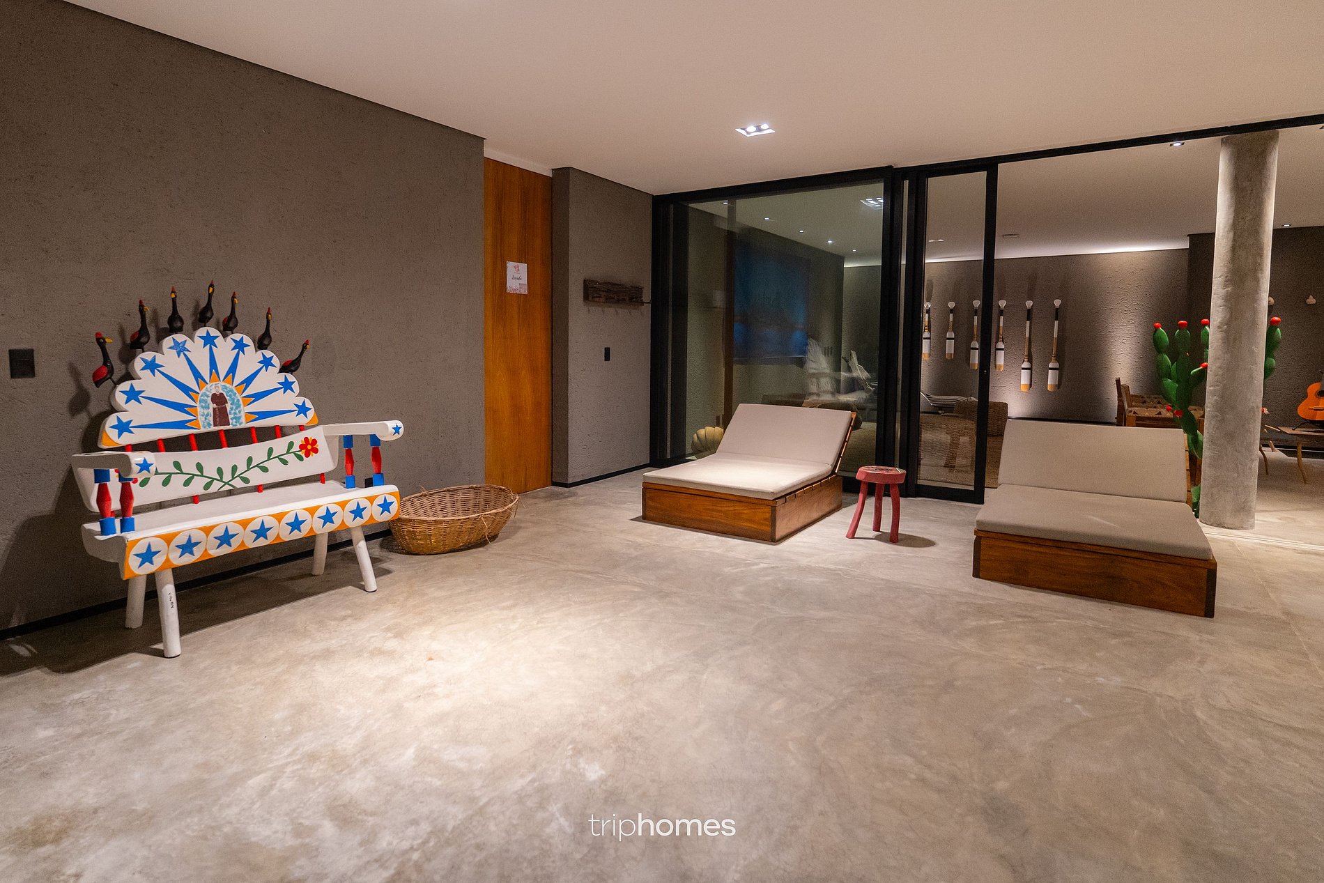 A área gourmet, equipada com churrasqueira americana e bar, convida a momentos de confraternização e experiências sensoriais únicas. Deste lounge pé na areia, contemple vistas deslumbrantes e sinta a brisa suave do mar, garantindo uma atmosfera de tranquilidade e conexão com a natureza.
