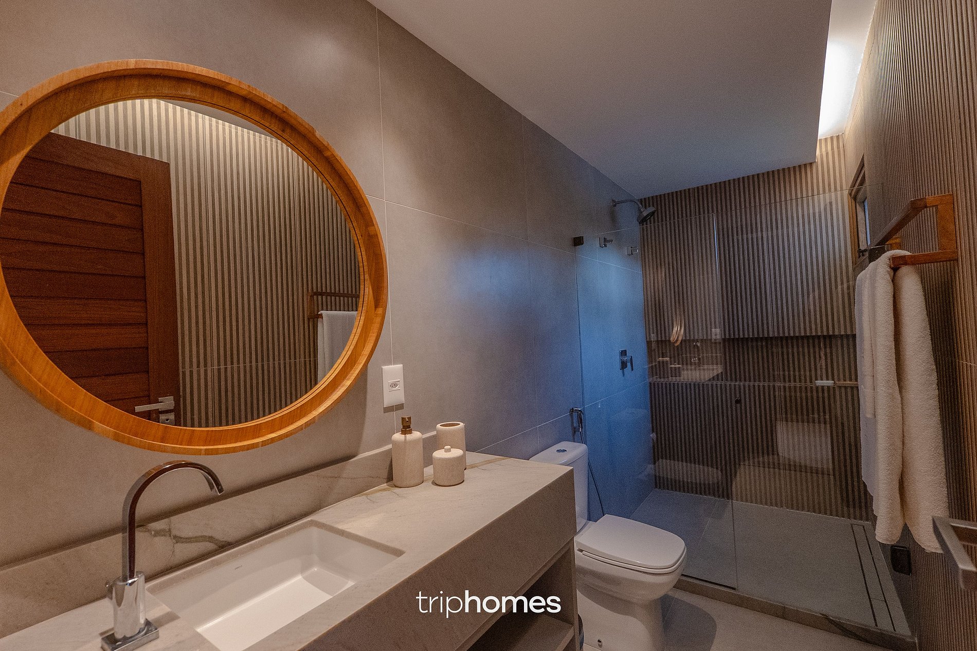 O layout da casa inclui quatro suítes na estrutura principal e duas suítes externas localizadas em um charmoso bangalô. Cada suíte foi planejada para oferecer privacidade, conforto e bem-estar, e os detalhes completos serão descritos em breve, assim que finalizarmos o registro fotográfico da propriedade.