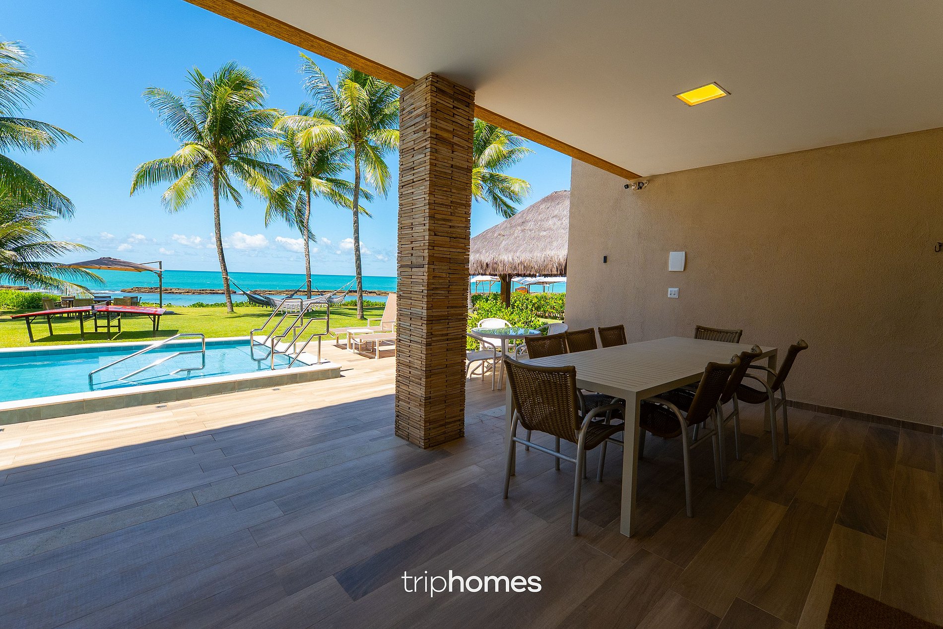Com ambientação que valoriza o estilo rústico-praiano e peças decorativas escolhidas a dedo, esta propriedade une o conforto da vida contemporânea ao encanto de uma das praias mais belas e preservadas do Brasil, cercada por coqueiros, mar calmo e paisagens naturais deslumbrantes.