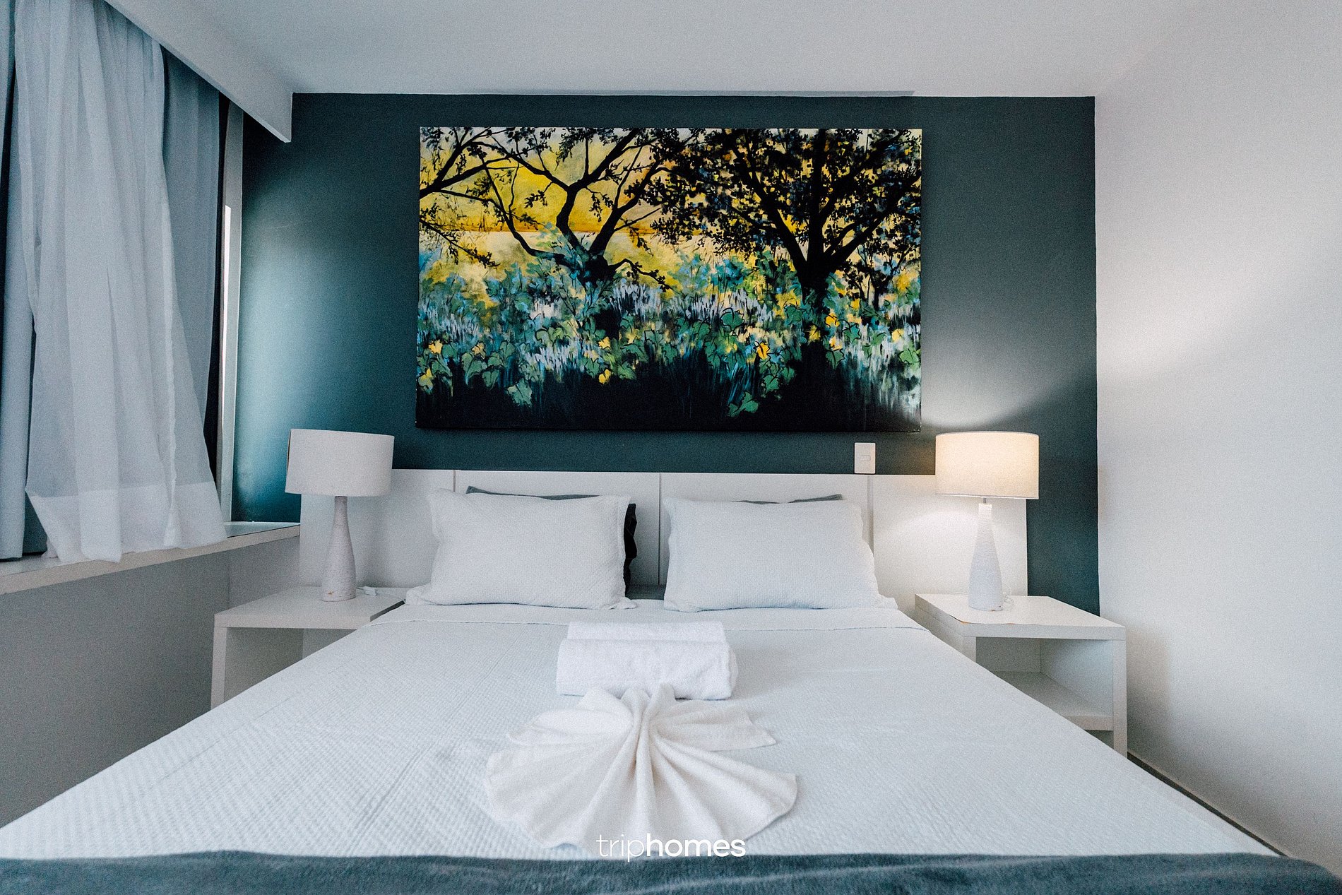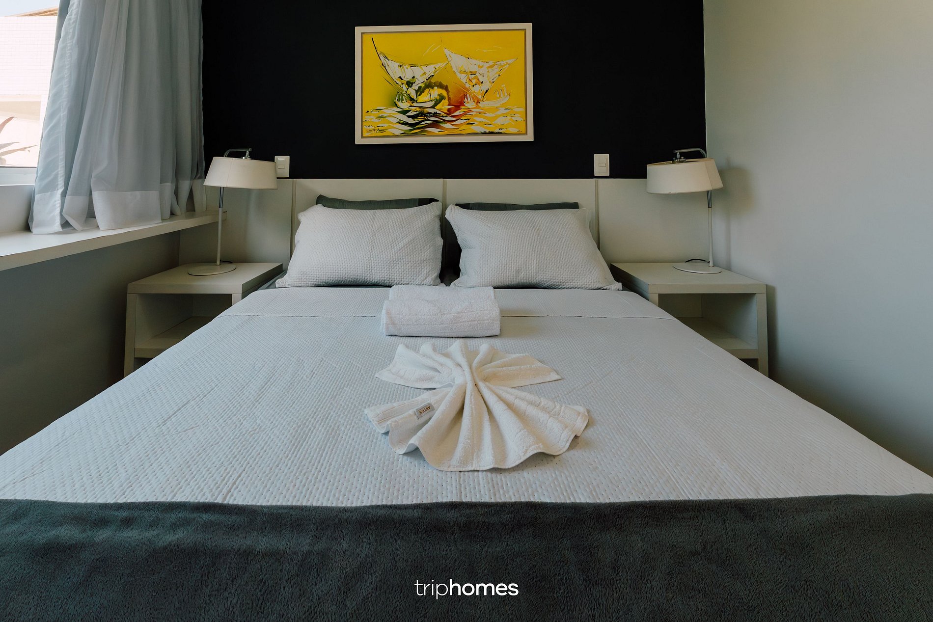 • Sala de Estar/Jantar: Ampla, integrada e bem iluminada, com mesa para 6 pessoas, sofá espaçoso, poltronas, TV e decoração moderna. Acesso direto à varanda com vista para o mar.